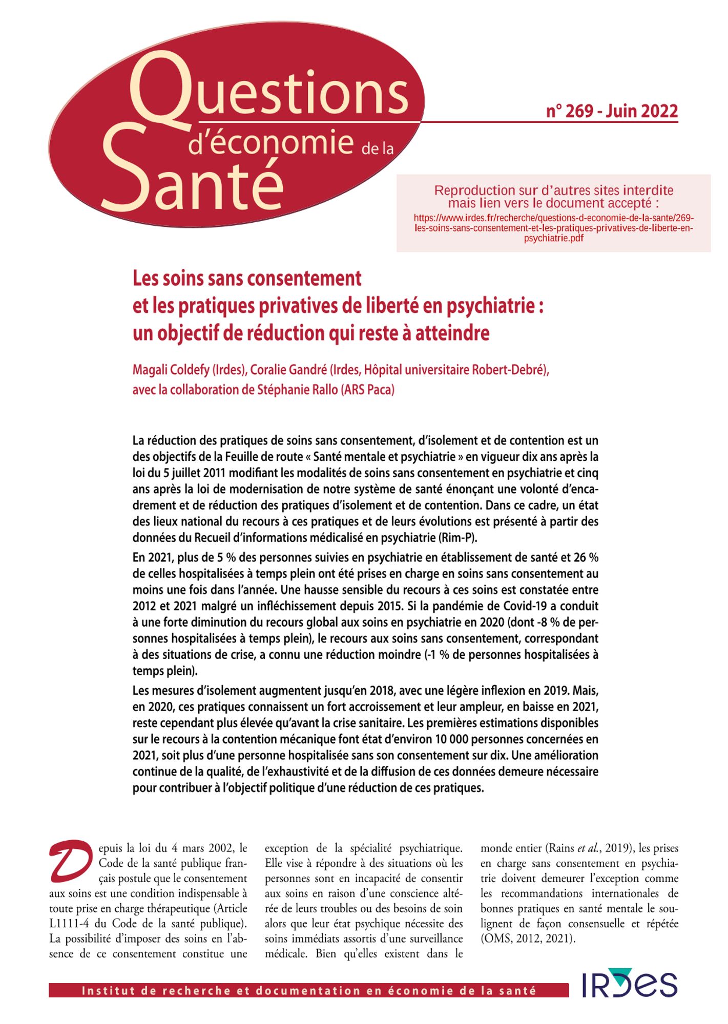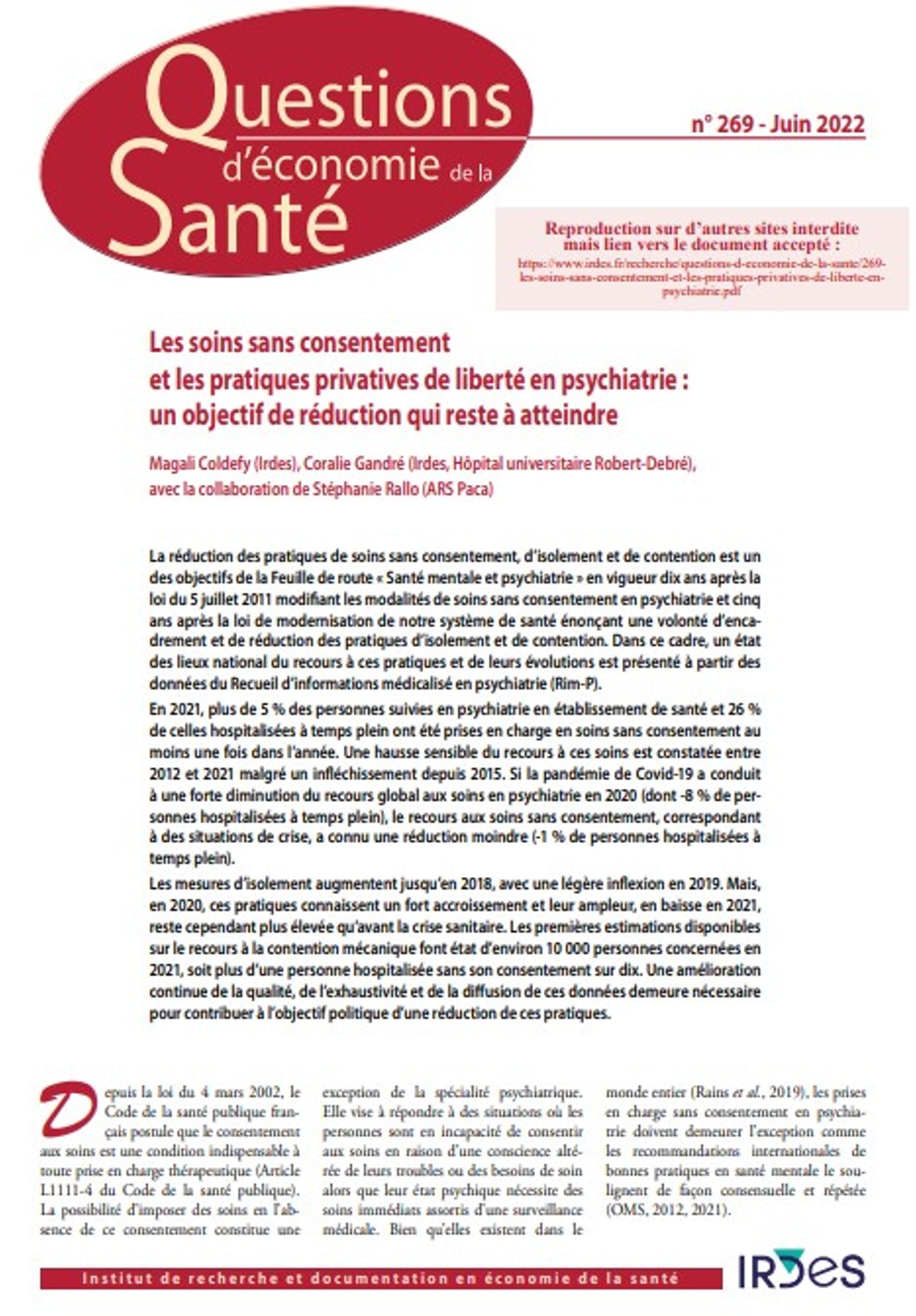 Les soins sans consentement et les pratiques privatives de liberté en psychiatrie : un objectif de réduction qui reste à atteindre