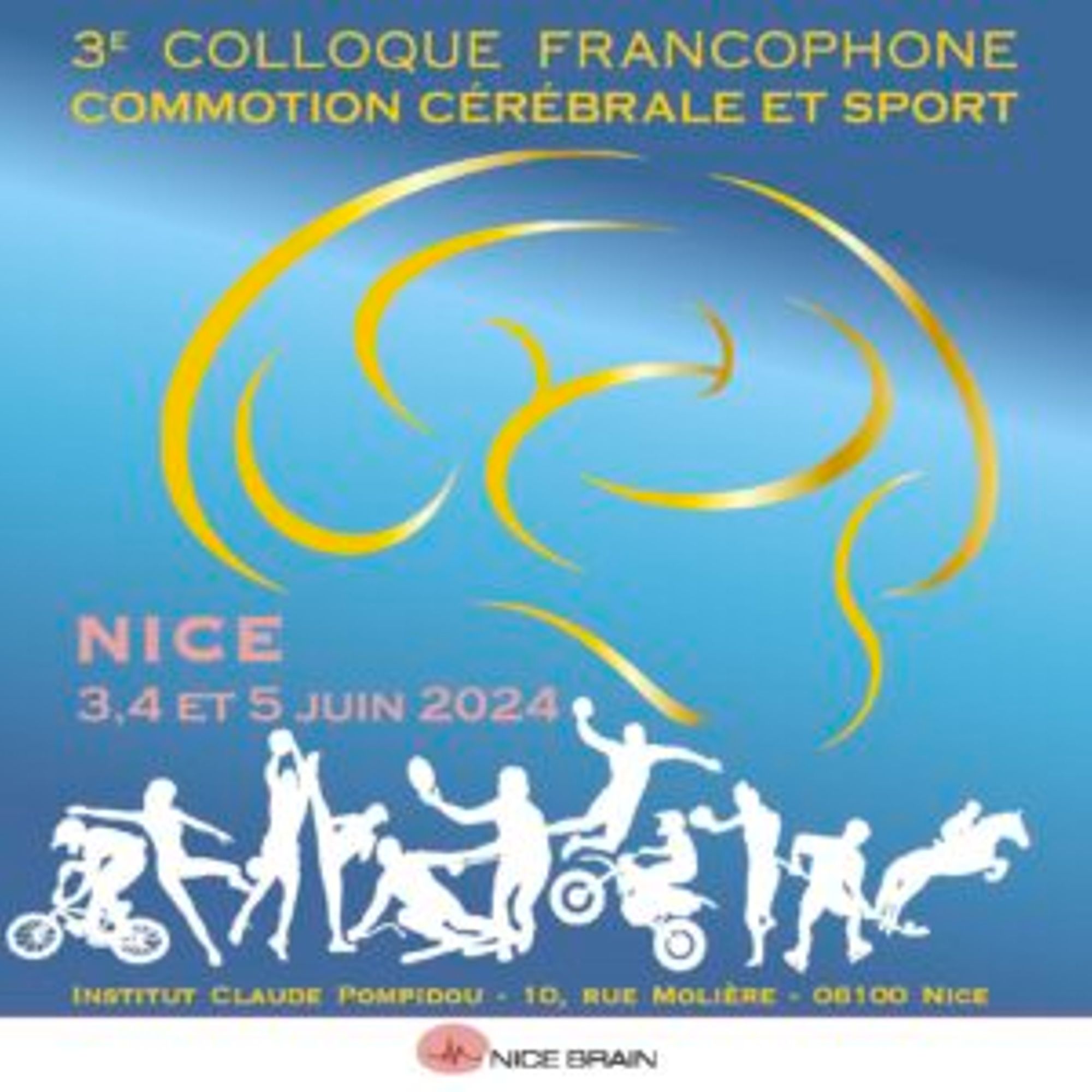 Le 3e Colloque Francophone Commotion Cérébrale et Sport se tiendra à Nice – Institut Claude Pompidou, 10, rue Molière – du lundi 3 au mercredi 5 juin prochain.