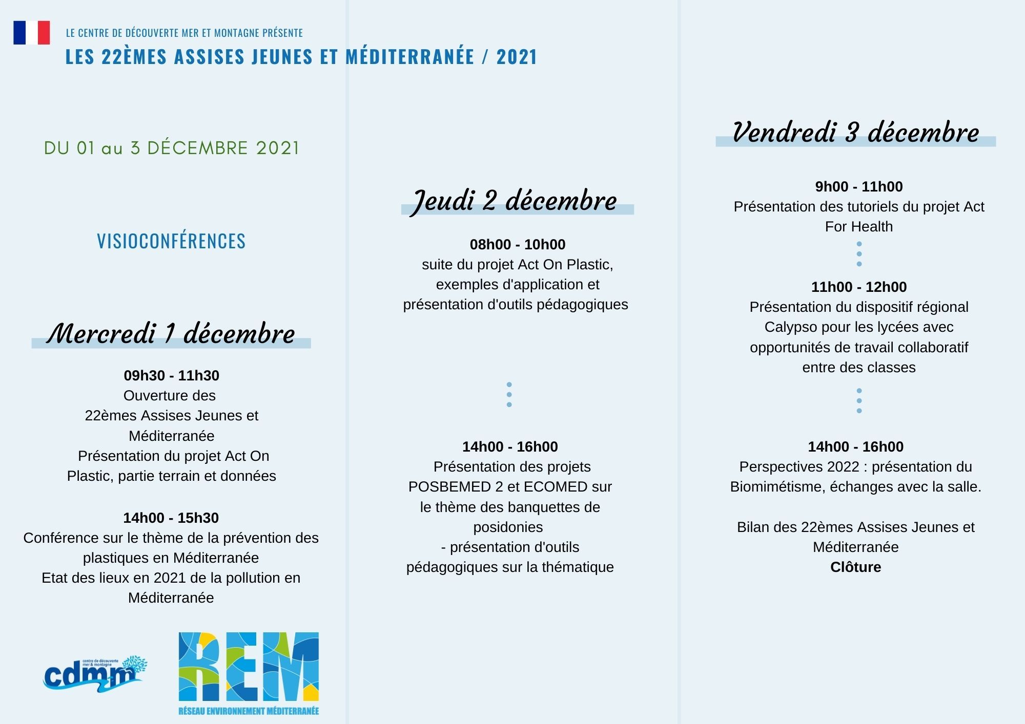 Cette visioconférence fait partie des 22èmes Assises Jeunes et Méditerranée, rencontres annuelles du Réseau Environnement Méditerranée (REM) qui se déroule du 1er au 3 décembre 2021, porté par le CDMM.