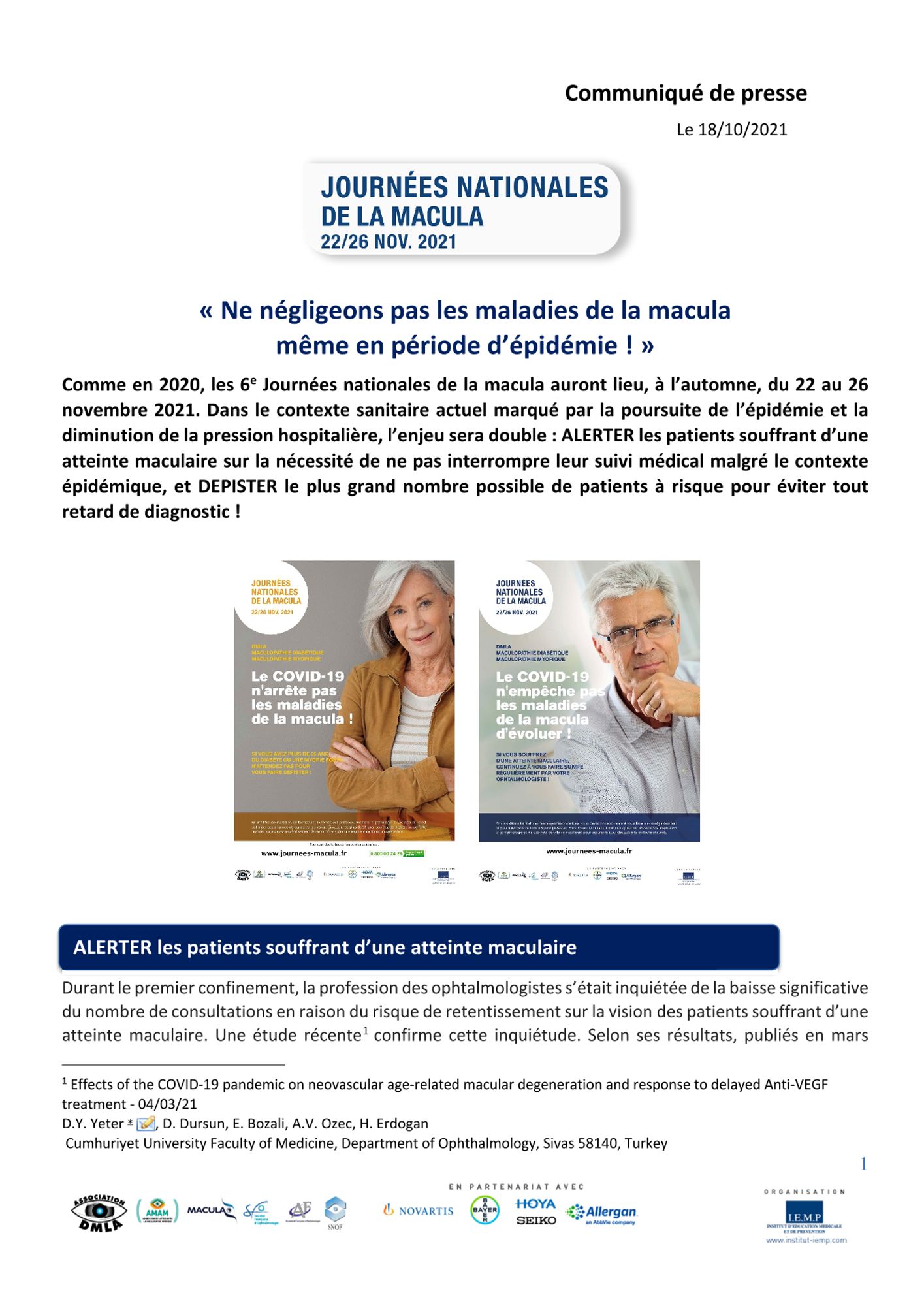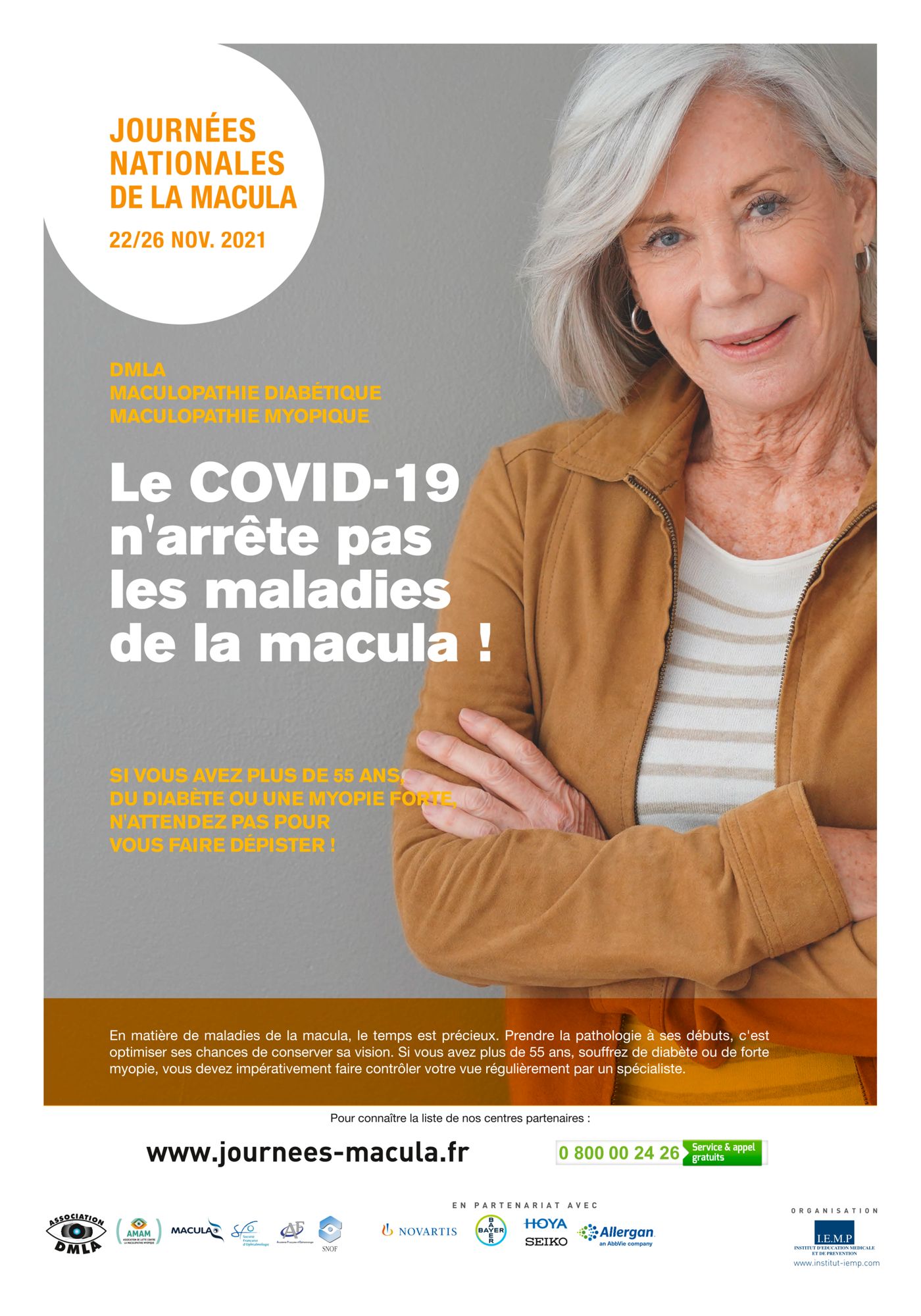 Comme en 2020, les 6e Journées nationales de la macula auront lieu, à l’automne, du 22 au 26 novembre 2021. Dans le contexte sanitaire actuel marqué par la poursuite de l’épidémie et la diminution de la pression hospitalière, l’enjeu sera double : ALERTER les patients souffrant d’une atteinte maculaire sur la nécessité de ne pas interrompre leur suivi médical malgré le contexte épidémique, et DEPISTER le plus grand nombre possible de patients à risque pour éviter tout retard de diagnostic !