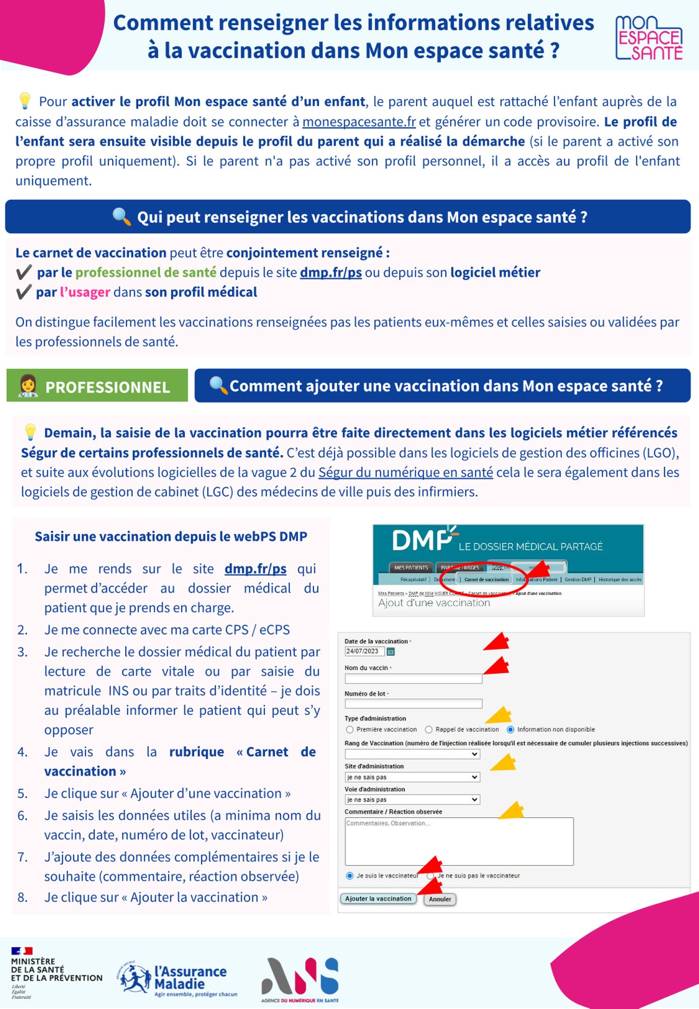 Le ministère de la Santé invite les professionnels de santé à renseigner les informations de vaccination de leurs patients et à adopter le réflexe du carnet de vaccination dans Mon espace santé. Il propose une série de fiches pratiques et de démonstrations.