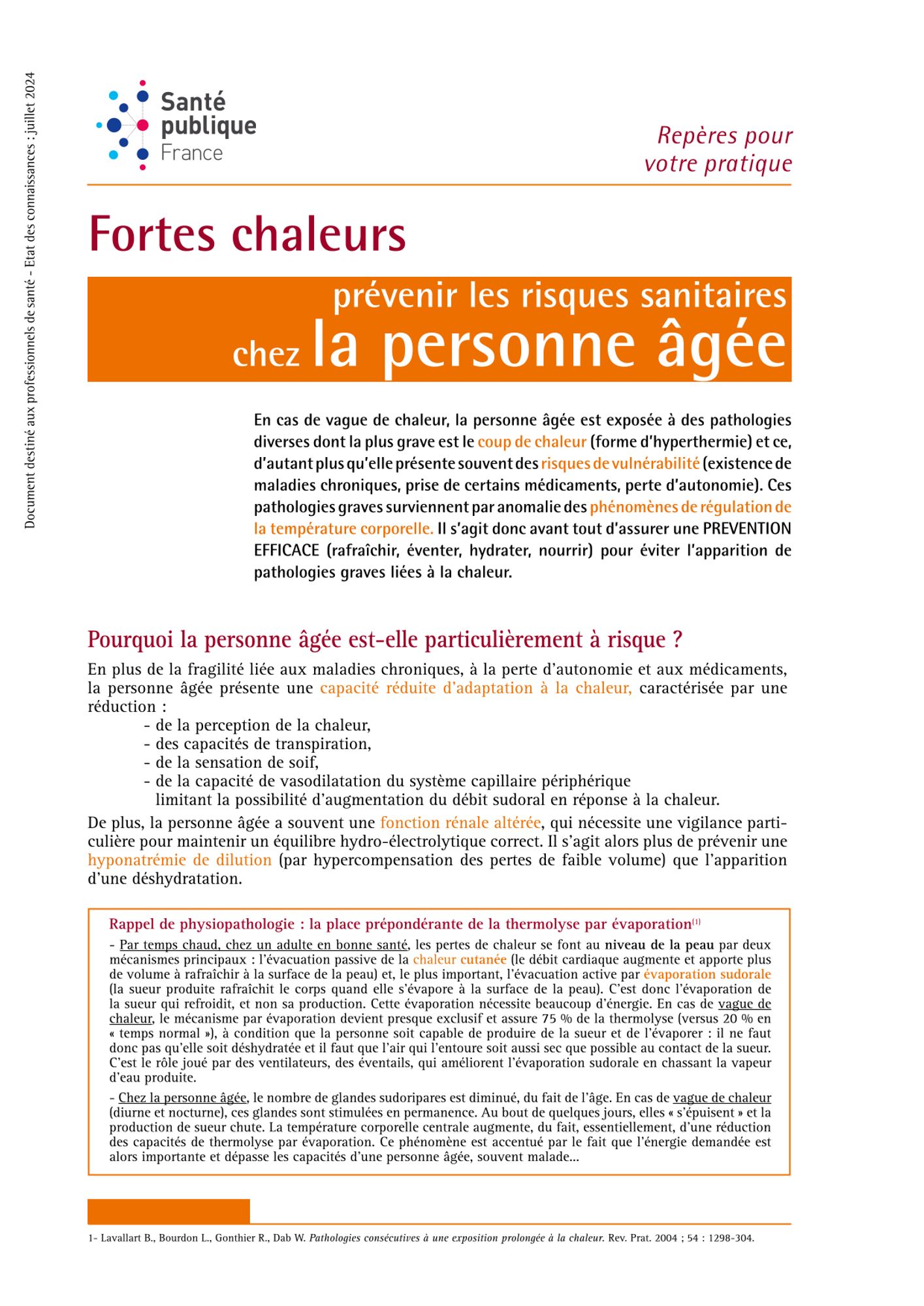 En plus des effets directs de la chaleur, la fatigue liée à la fois à la chaleur et au travail peut conduire à une baisse de la vigilance et à des accidents de travail. Afin de limiter les accidents du travail liés aux conditions climatiques, quelques mesures simples prévues par la règlementation s’imposent aux employeurs (mise à disposition des travailleurs un local de repos adapté aux conditions climatiques, aménagement du chantier de manière à permettre l’organisation de pauses dans des conditions de sécurité équivalentes, etc). L’INRS met à disposition des supports pour agir et sensibiliser les salariés.