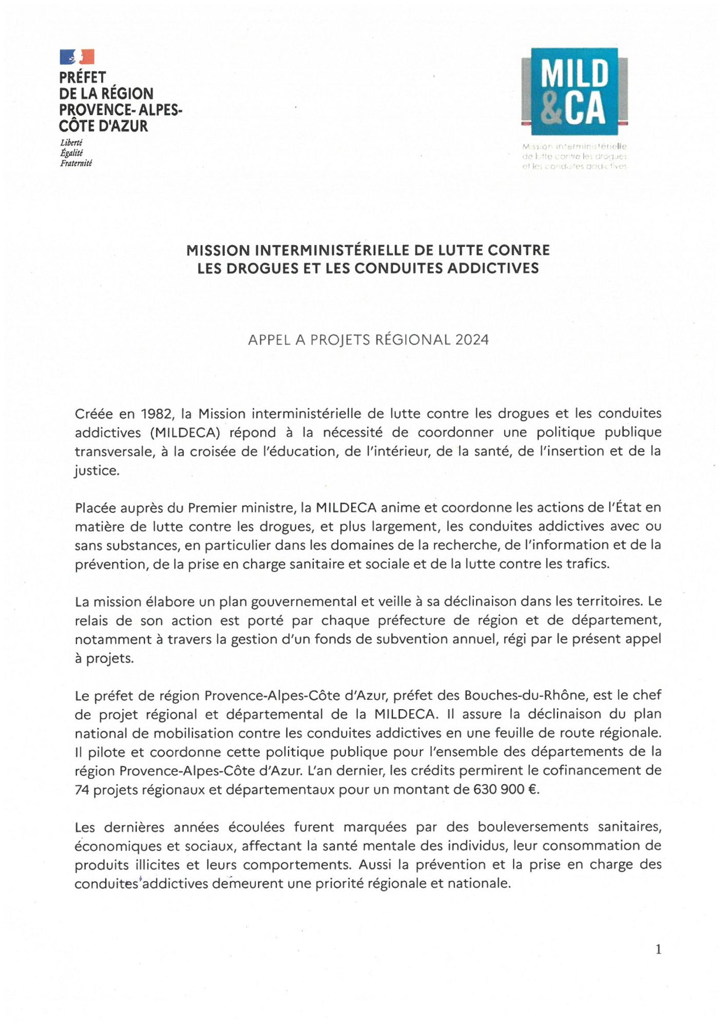 MILDECA - Mars 2024 - Date de limite de dépôt 30 avril 2024
