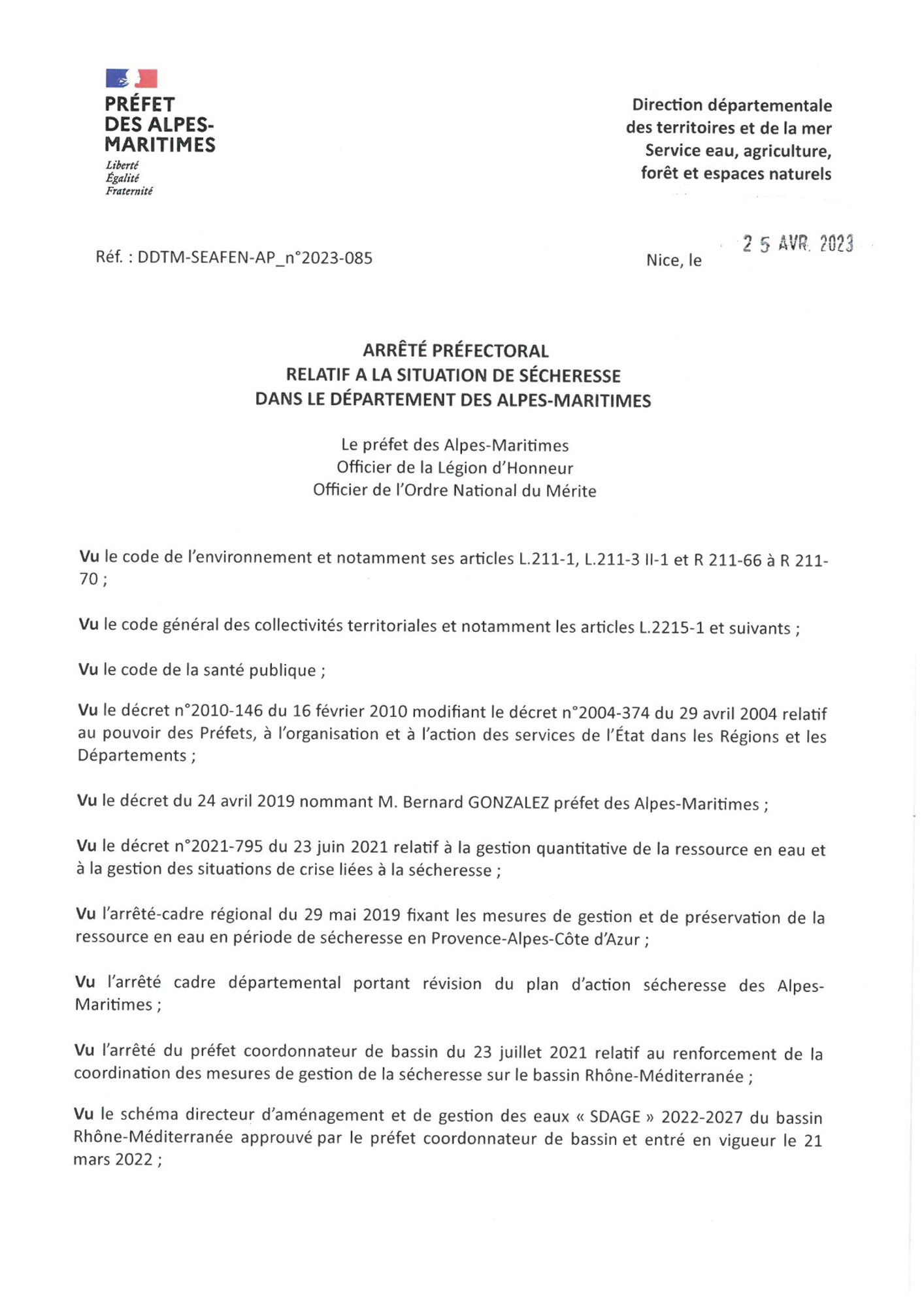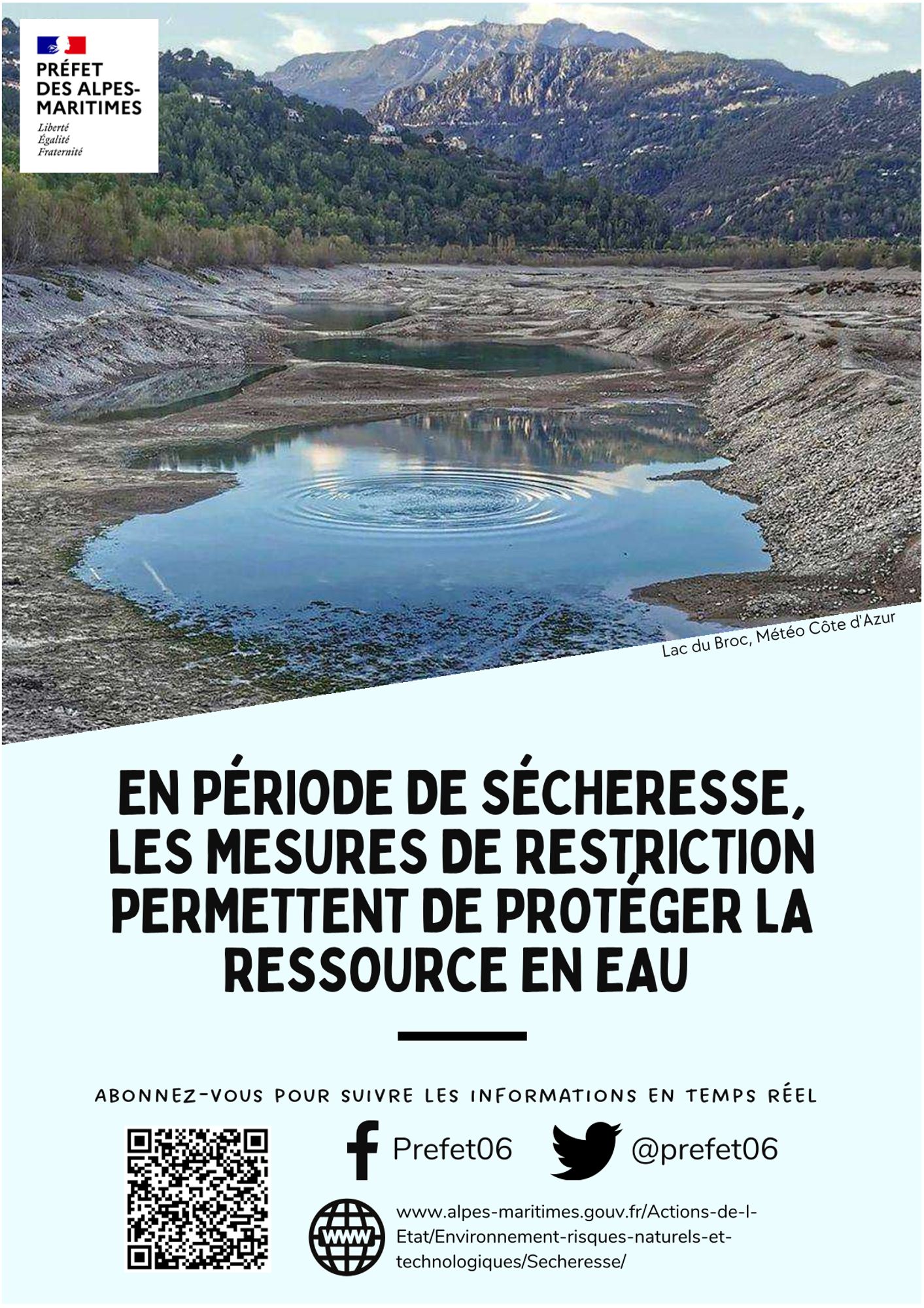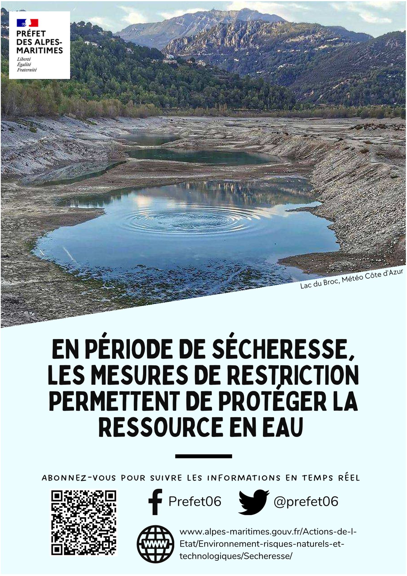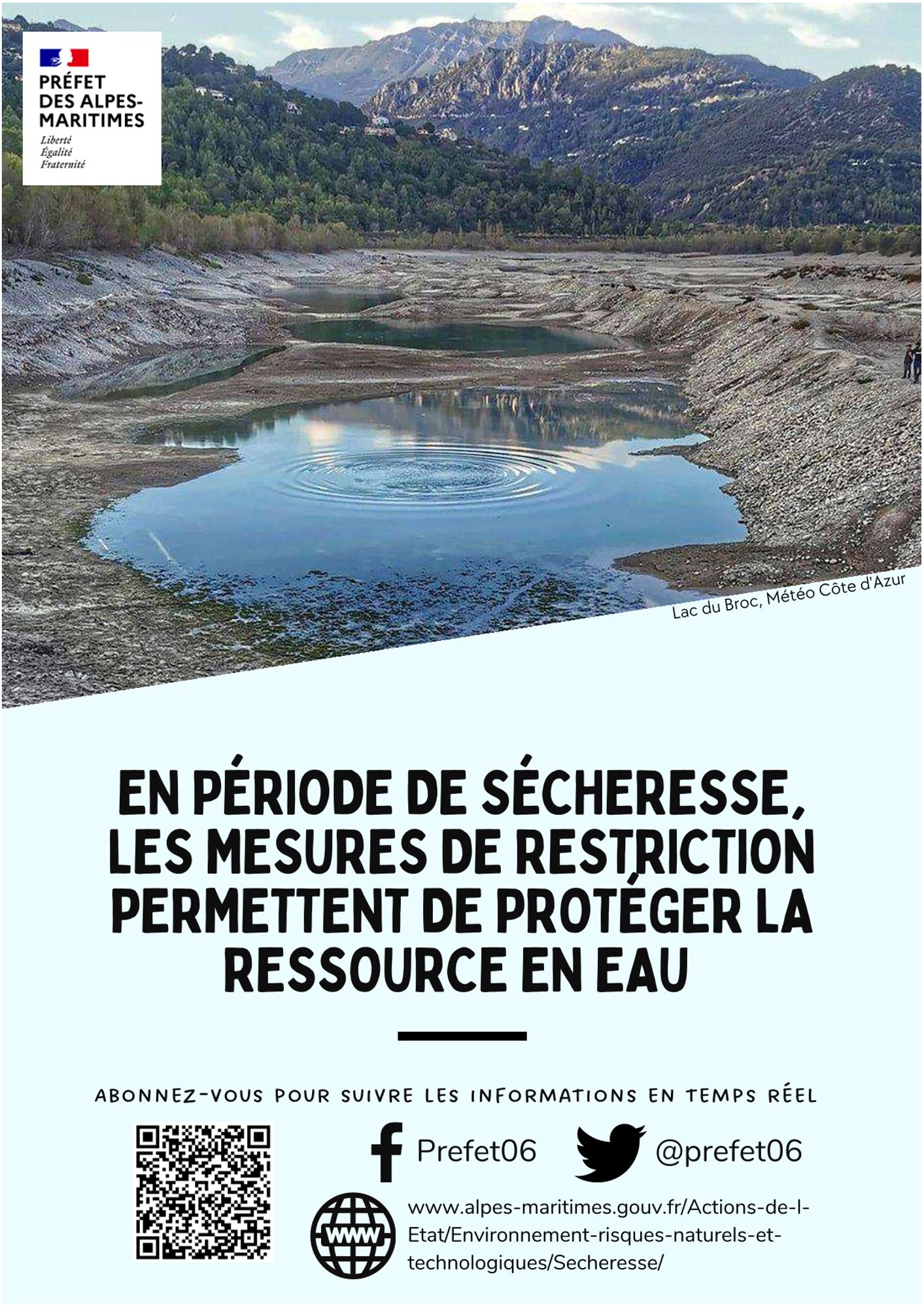 Face à cette situation, l’ensemble des habitants des Alpes-Maritimes sont appelés à un usage civique et responsable de la ressource en eau.