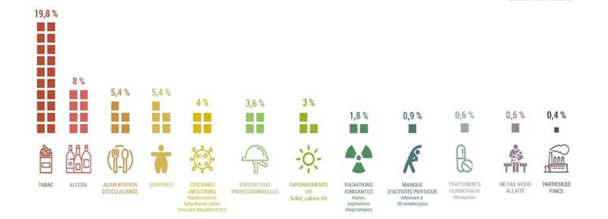 - Le tabac, premier facteur de risque évitable de cancer : 68 000 nouveaux cas de cancers et 45 000 décès liés chaque année à sa consommation. 17 localisations de cancers sont concernées.