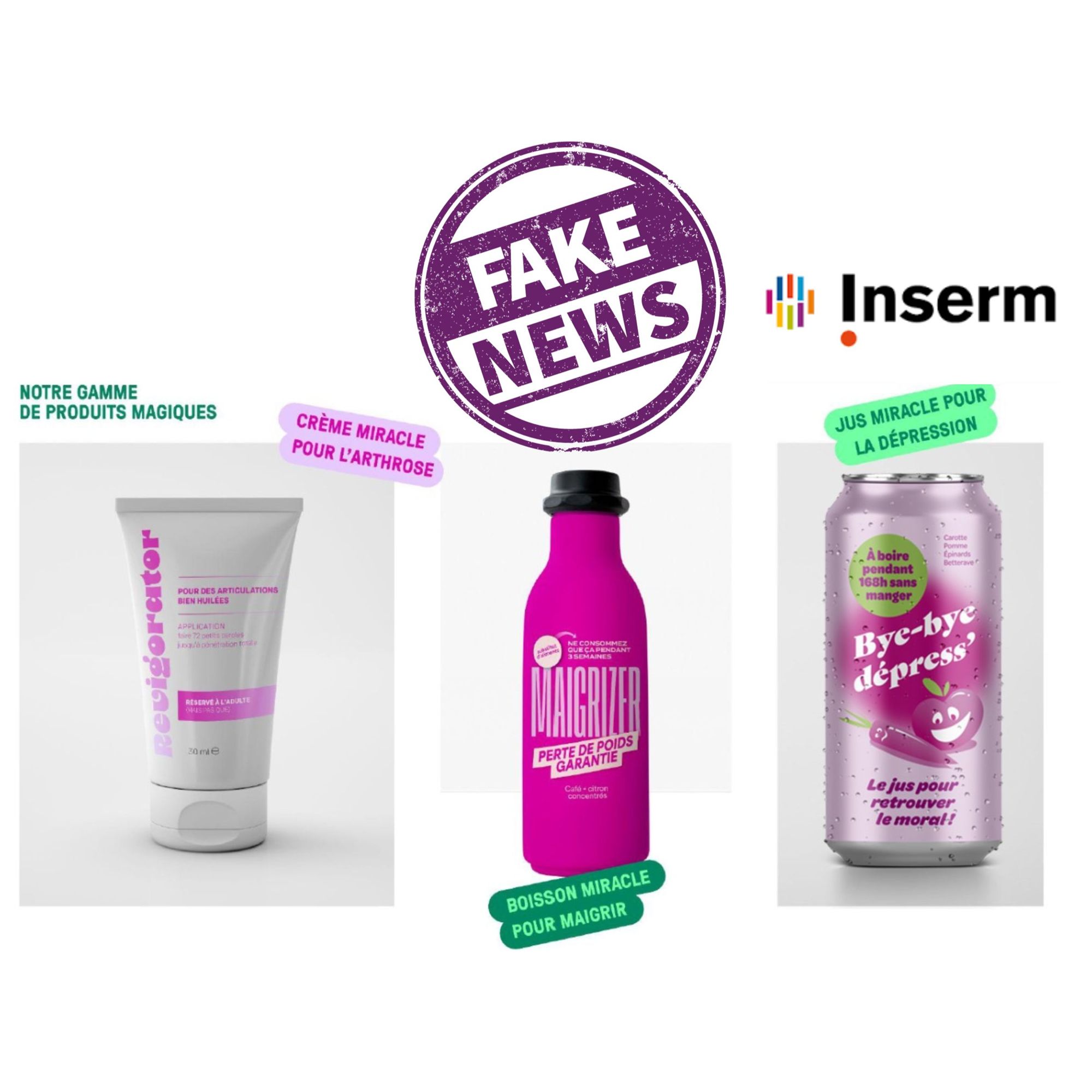 Des produits magiques pour traiter les problèmes de peau, garantir une perte de poids rapide ou soigner la dépression : telle est la promesse de la gamme de « faux produits » conçus par l’Inserm. Inspirés de ce que l’on peut trouver sur internet, les trois « faux produits » dont les formulations sont volontairement exagérées ont été disposés dans un distributeur positionné dans une grande gare parisienne afin de recueillir les réactions des passants. Ce dispositif a été filmé pour en tirer un spot publicitaire.