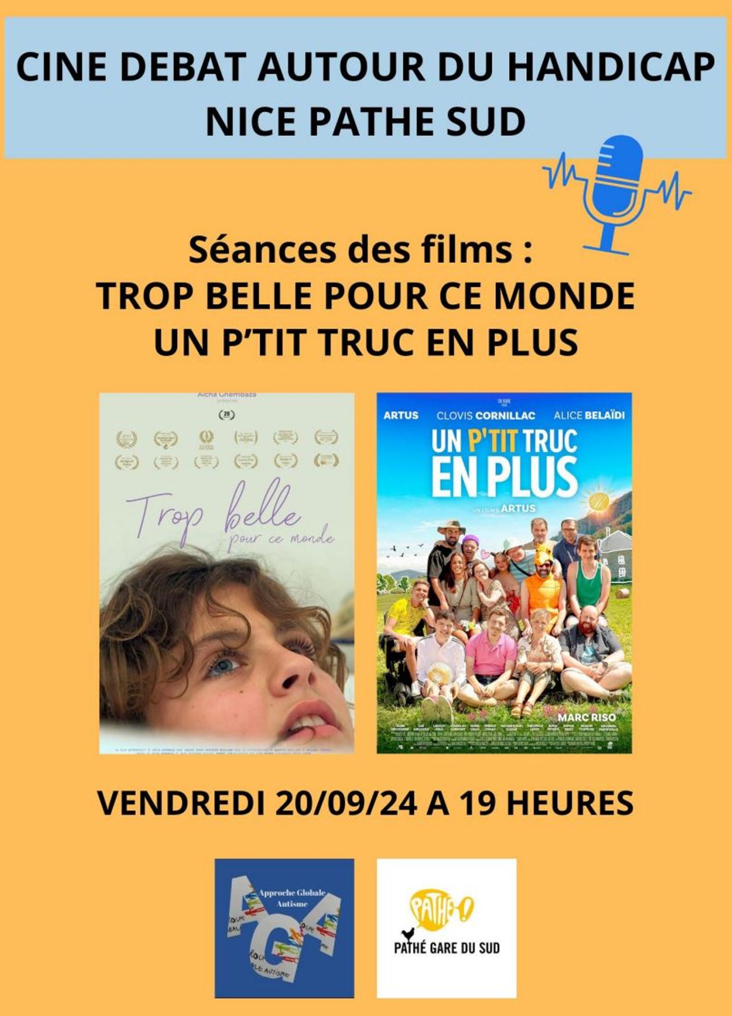 Le vendredi 20 Septembre 2024, l'association Approche Globale Autisme propose au Cinéma Pathé Gare du Sud un ciné débat autour du handicap avec plusieurs associations et intervenants.