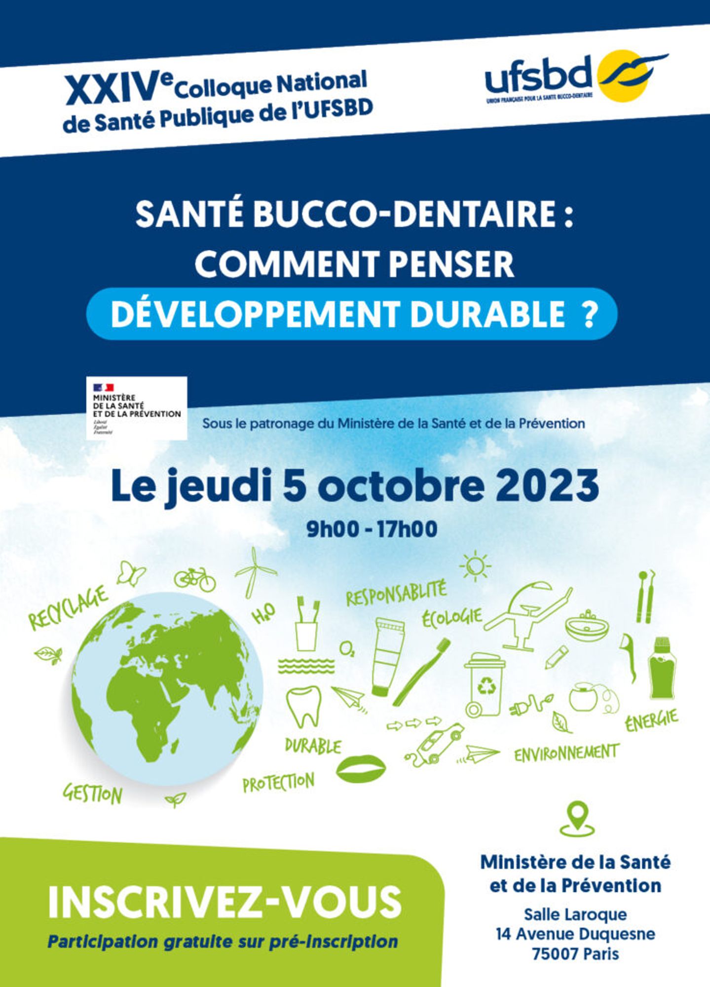 24ème Colloque annuel de l'UFSBD sur le thème "Santé bucco-dentaire : comment penser développement durable ?" le jeudi 05 octobre 2023 à Paris.