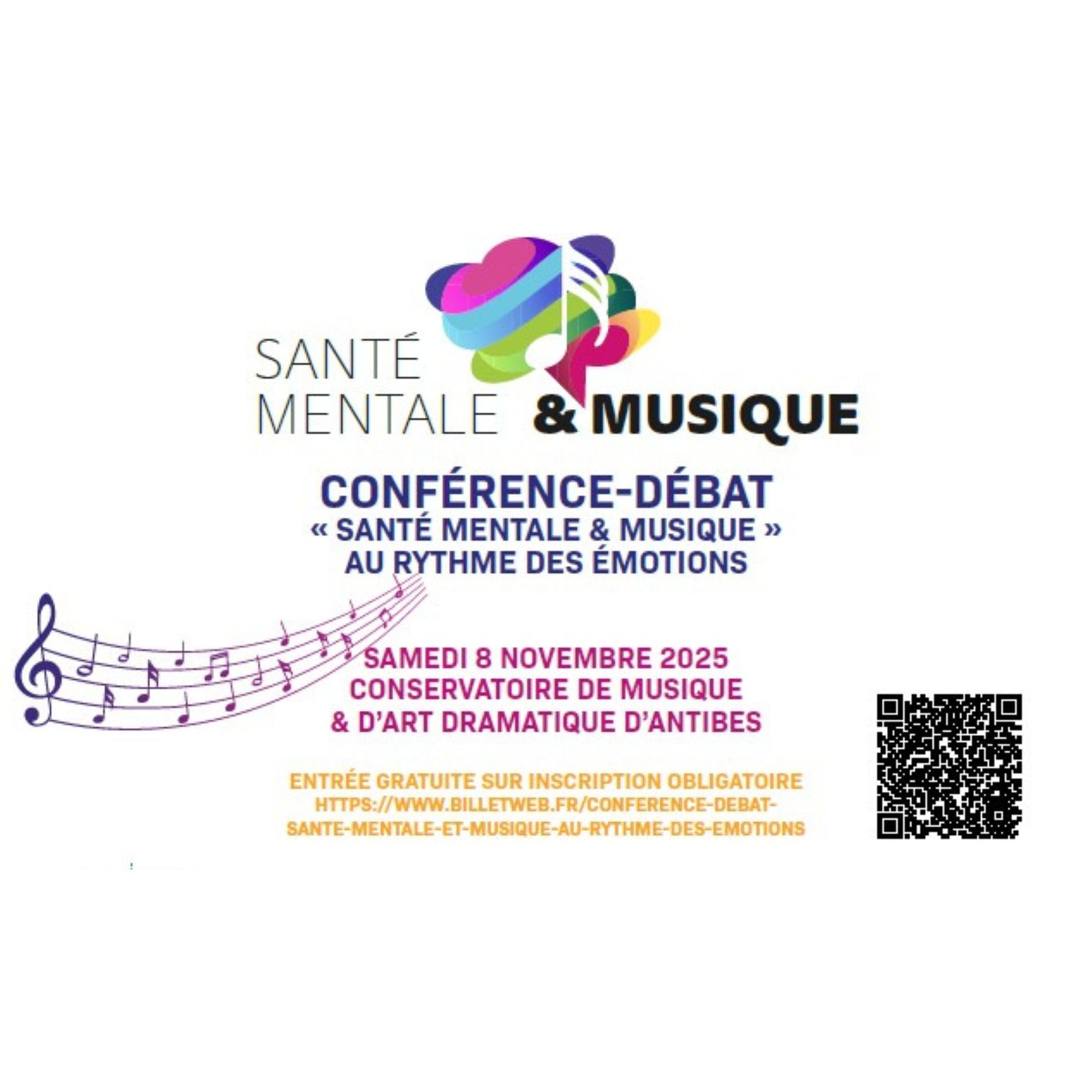 Conférence-débat « Santé Mentale et Musique» qui aura lieu le samedi 8 novembre 2025 au Conservatoire de musique et d’art dramatique à Antibes ; ci-joint le programme.