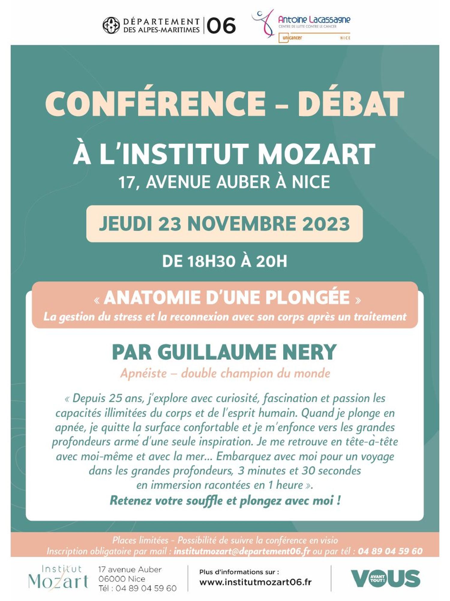 Le double Champion du monde d'apnée, Guillaume Nery vous présente la conférence qu'il animera à l'Institut Mozart le jeudi 23 novembre :