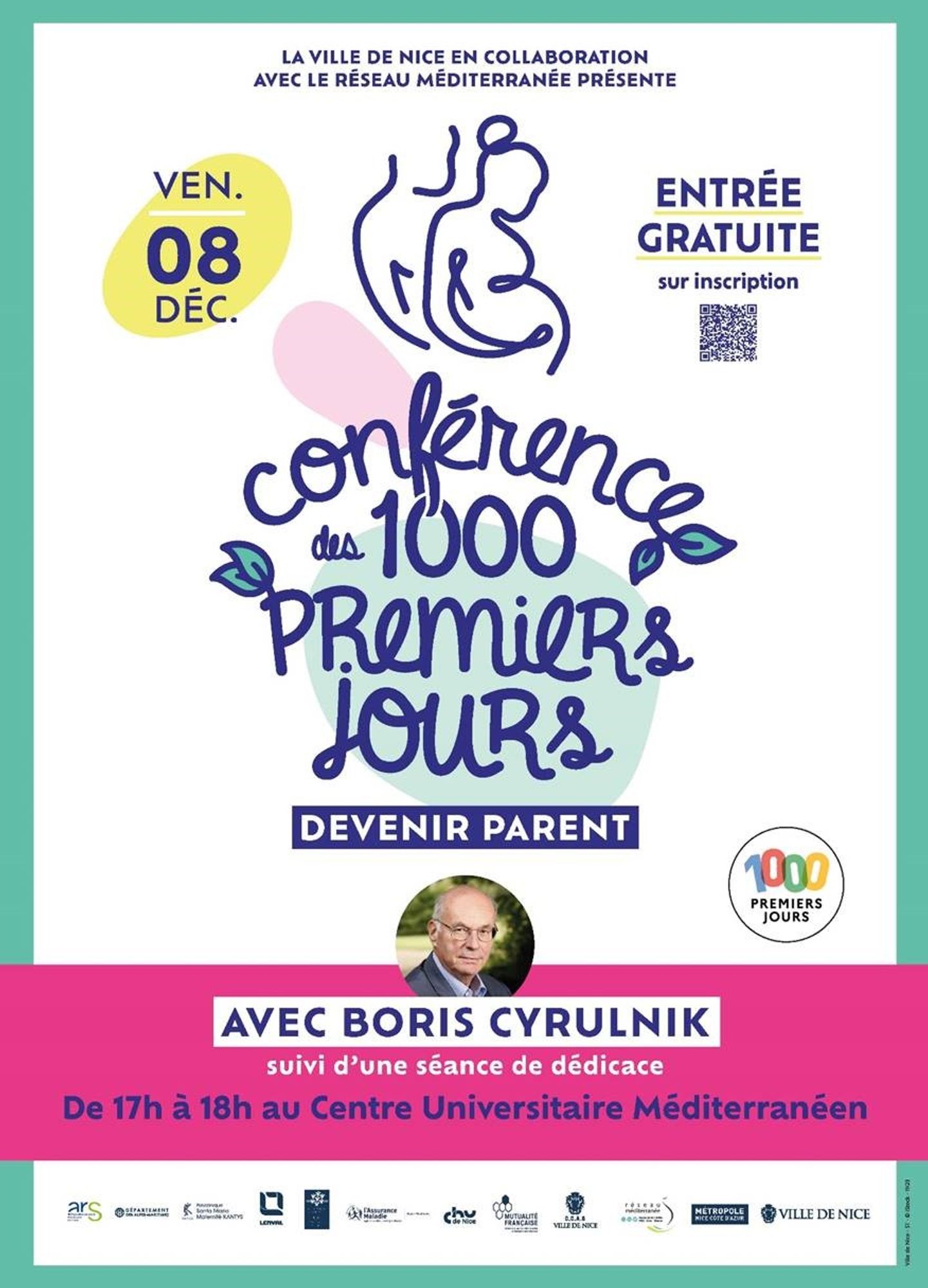 Aussi, dans la suite de la "Journée 1000 premiers jours : devenir parent du désir de conception aux 2 ans de l'enfant" qui s'est tenue le 7 octobre 2023 au kiosque à Musique, la ville de Nice sous l'impulsion de Richard Chemla, Adjoint au maire de Nice délégué à la Transition écologique et énergétique, à la Santé et au Bien-être et à la Protection animale et de Barbara PROT - Conseillère Municipale subdéléguée à la Prévention, à l’Education à la santé et aux Associations caritatives, Conseillère Métropolitaine et en partenariat avec le réseau méditerranée auront l'immense plaisir d'accueillir Boris CYRULNIK pour une conférence grand public, suivi d’une séance de dédicace.