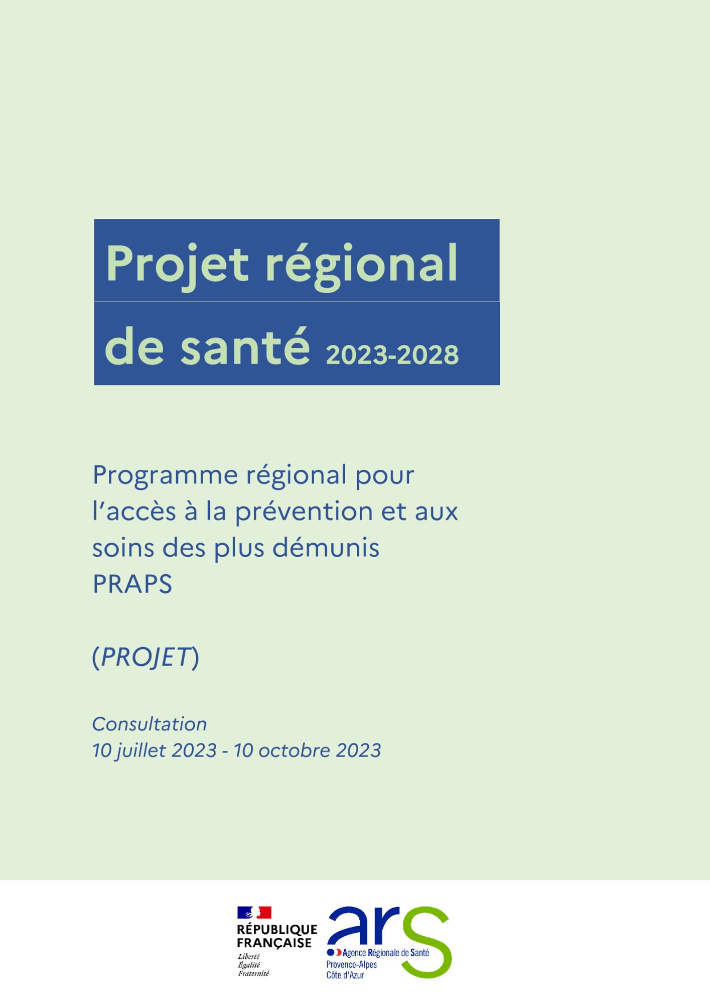 Après plus d’un an de travail collaboratif, l’ARS Paca met en consultation le projet de Schéma régional de santé (SRS) ainsi que le projet de Programme régional pour l’accès à la prévention et aux soins des plus démunis (PRAPS) pour une durée de 3 mois à compter de la publication de l’avis de consultation au recueil des actes administratifs.