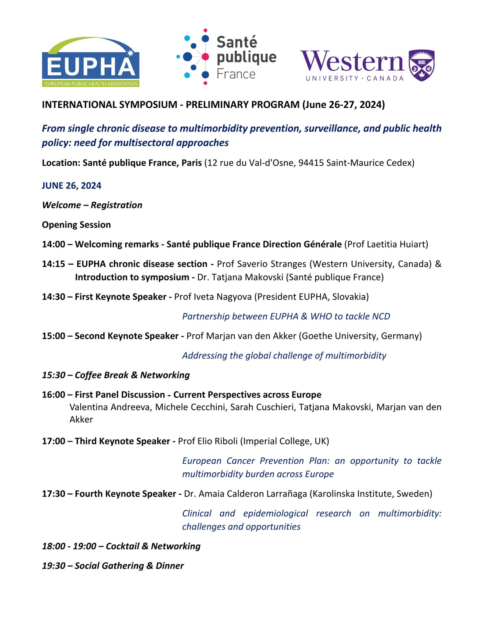 Ce symposium a pour objectif à échanger autour des défis et des opportunités en matière de surveillance, de recherche, de prévention et de politiques publiques dans le domaine de la multimorbidité.