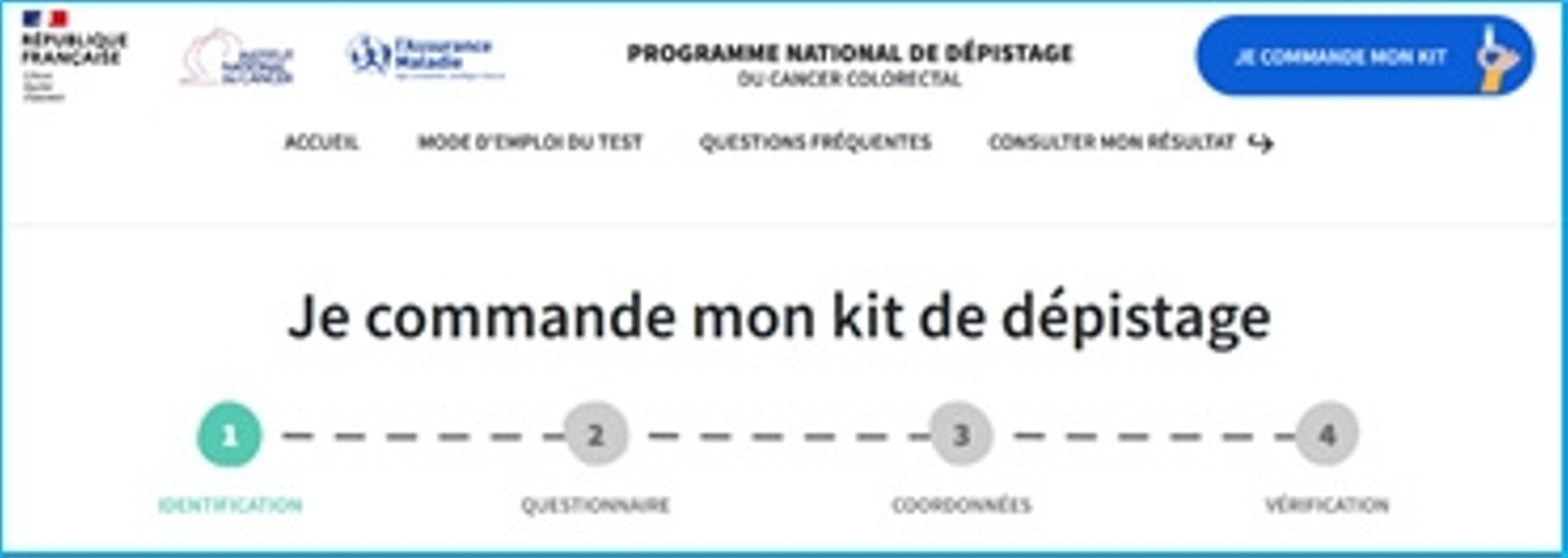 Monkit.depistage-colorectal.fr est un site du Ministère de la Santé et des Solidarités, l’Assurance Maladie et l’Institut national du cancer. Il vise à faciliter et diversifier les modalités d’accès au test de dépistage déjà accessible pour le patient (médecin généraliste, gynécologue, hépato- gastroentérologue…). Son objectif est de favoriser la participation de la population cible à ce dépistage qui sauve des vies.