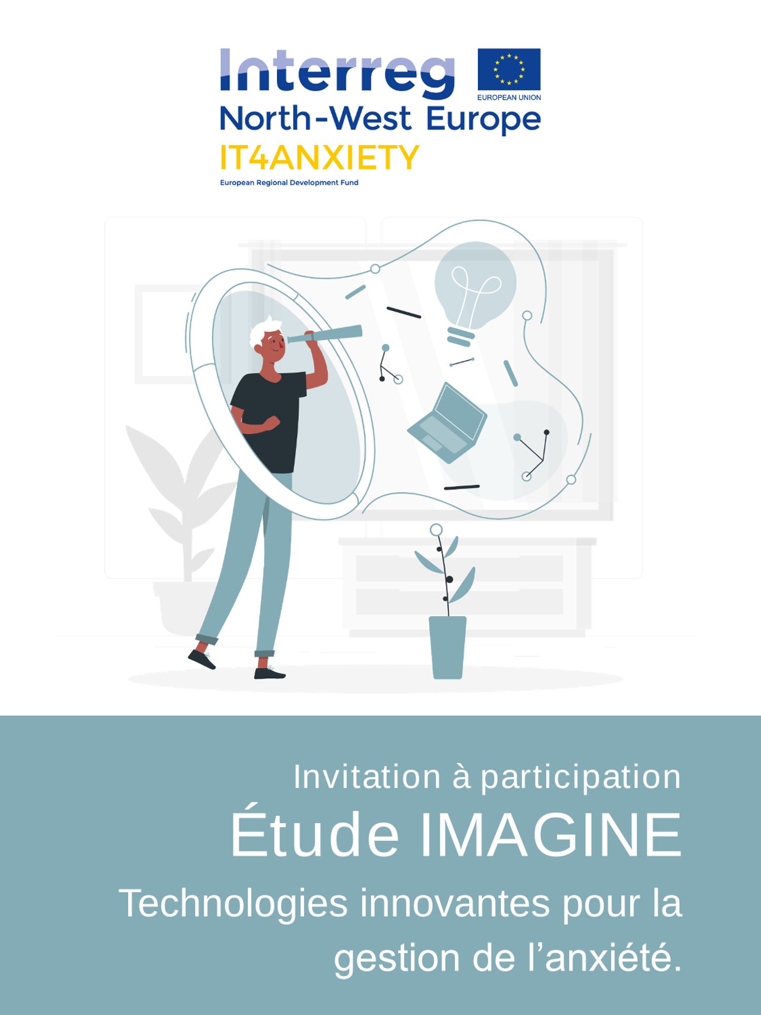 L’étude IMAGINE est menée par le CCOMS dans le cadre du projet européen IT4Anxiety, INTERREG Europe du Nord-Ouest, impliquant plusieurs équipes de recherche provenant de 6 pays (Belgique, Allemagne, Pays-Bas, Ecosse, Irlande du Nord, France).