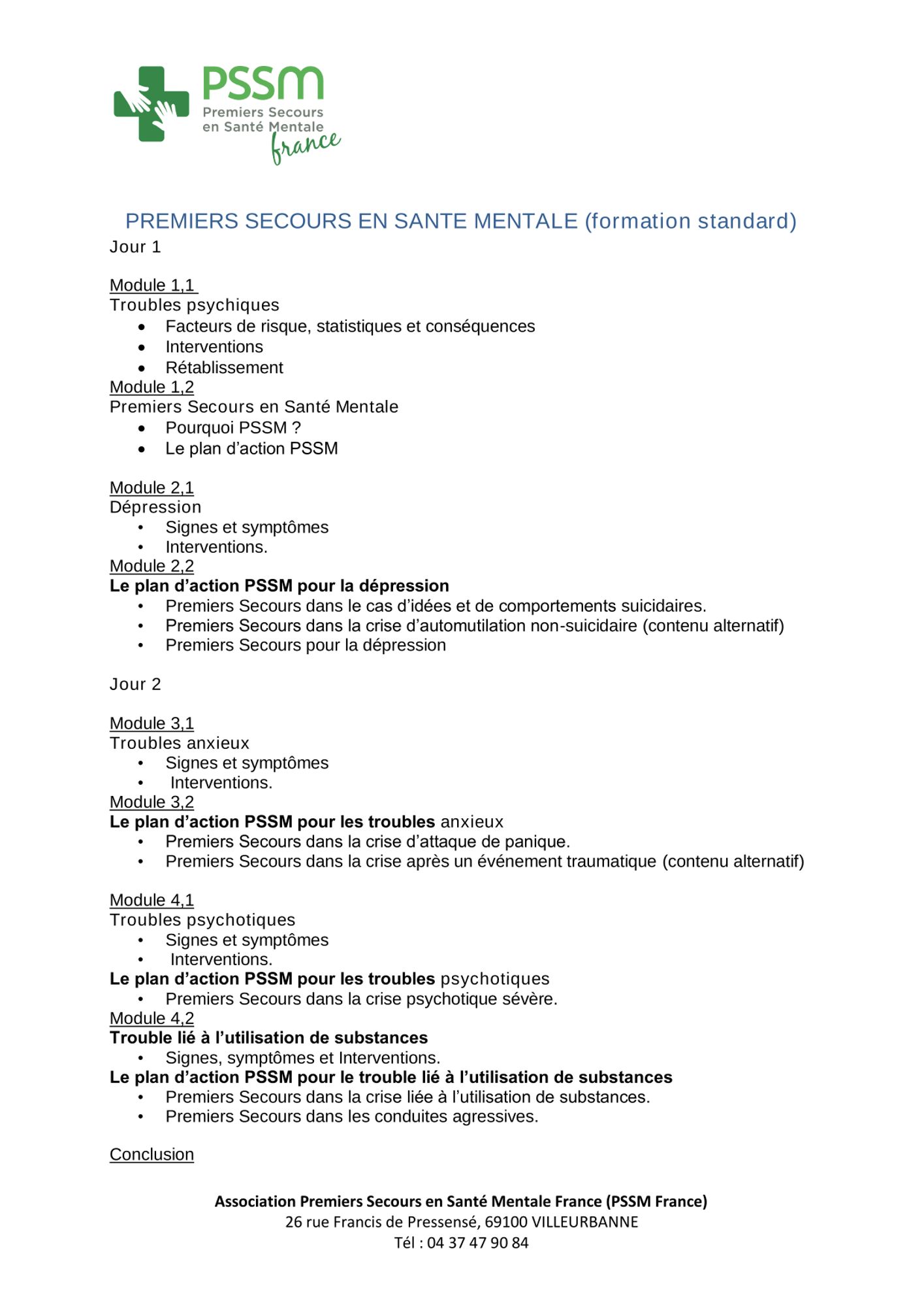 La formation apprend comment fournir un soutien initial aux personnes qui subissent le début de troubles de santé mentale, la détérioration de troubles existants de santé mentale, ou des crises de santé mentale :