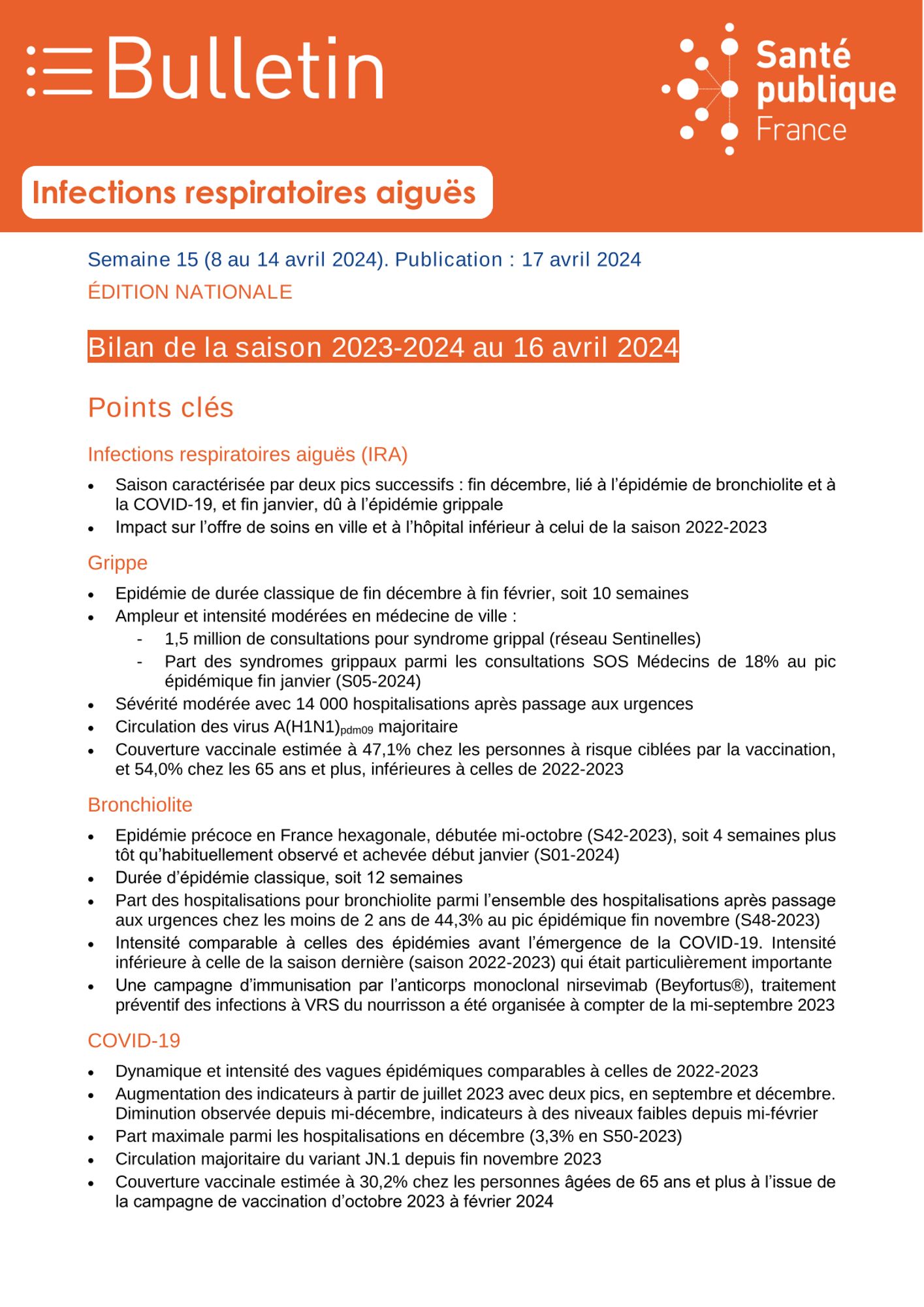 Santé Publique France - Bulletin du 17 avril 2024.