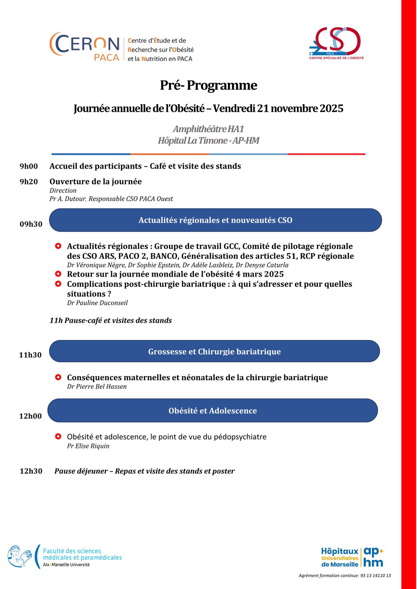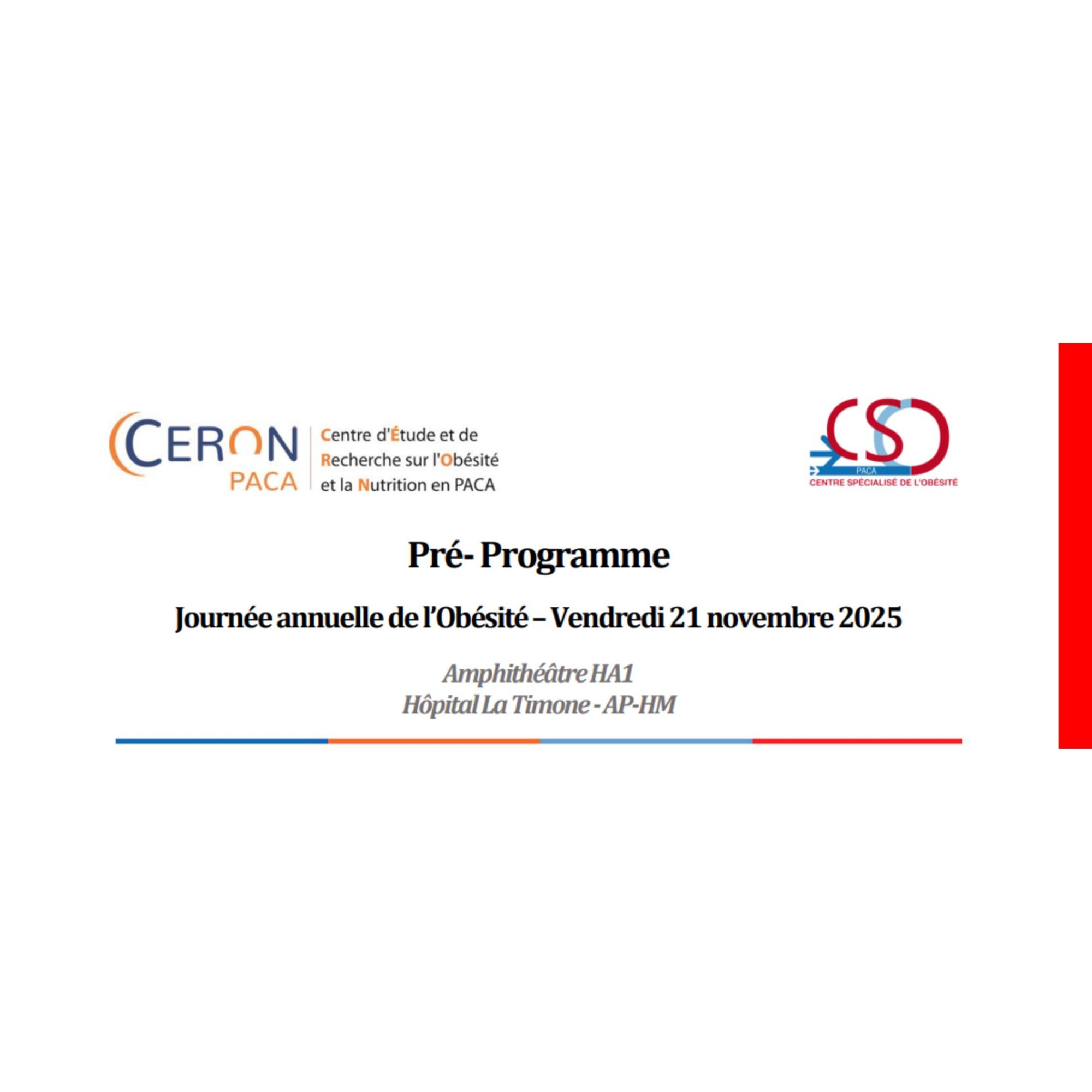 Les Centres Spécialisés de l'Obésité PACA vous convient à la journée annuelle de l'obésité. Cette journée aura lieu le vendredi 21 Novembre 2025, à l'Hôpital de la Timone à Marseille.