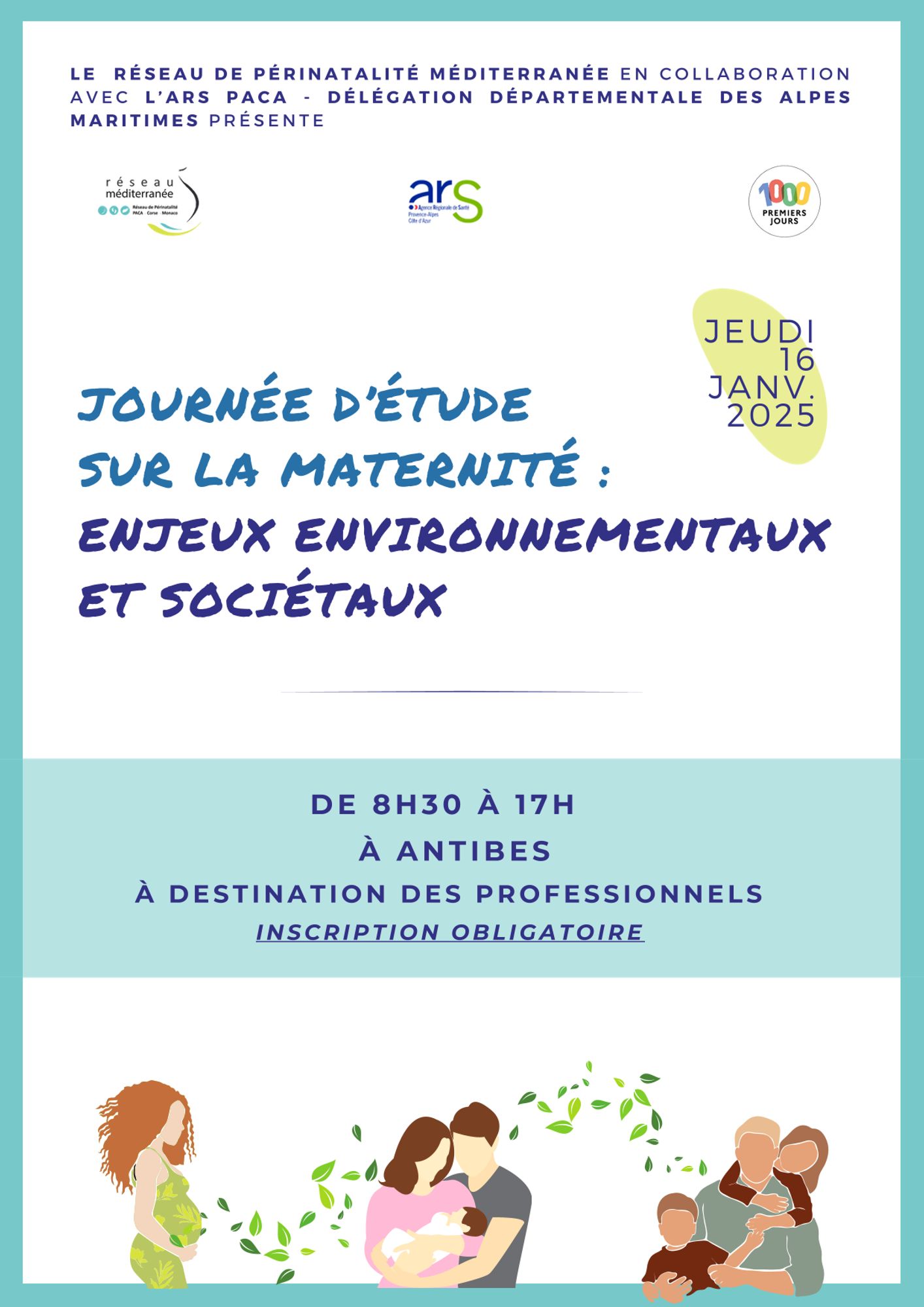 Le réseau de périnatalité Méditerranée en collaboration avec l’ARS PACA – Délégation départementale des Alpes Maritimes, vous convie à sa prochaine Journée d’étude sur la maternité qui se déroulera le : Jeudi 16 Janvier 2025 à Antibes