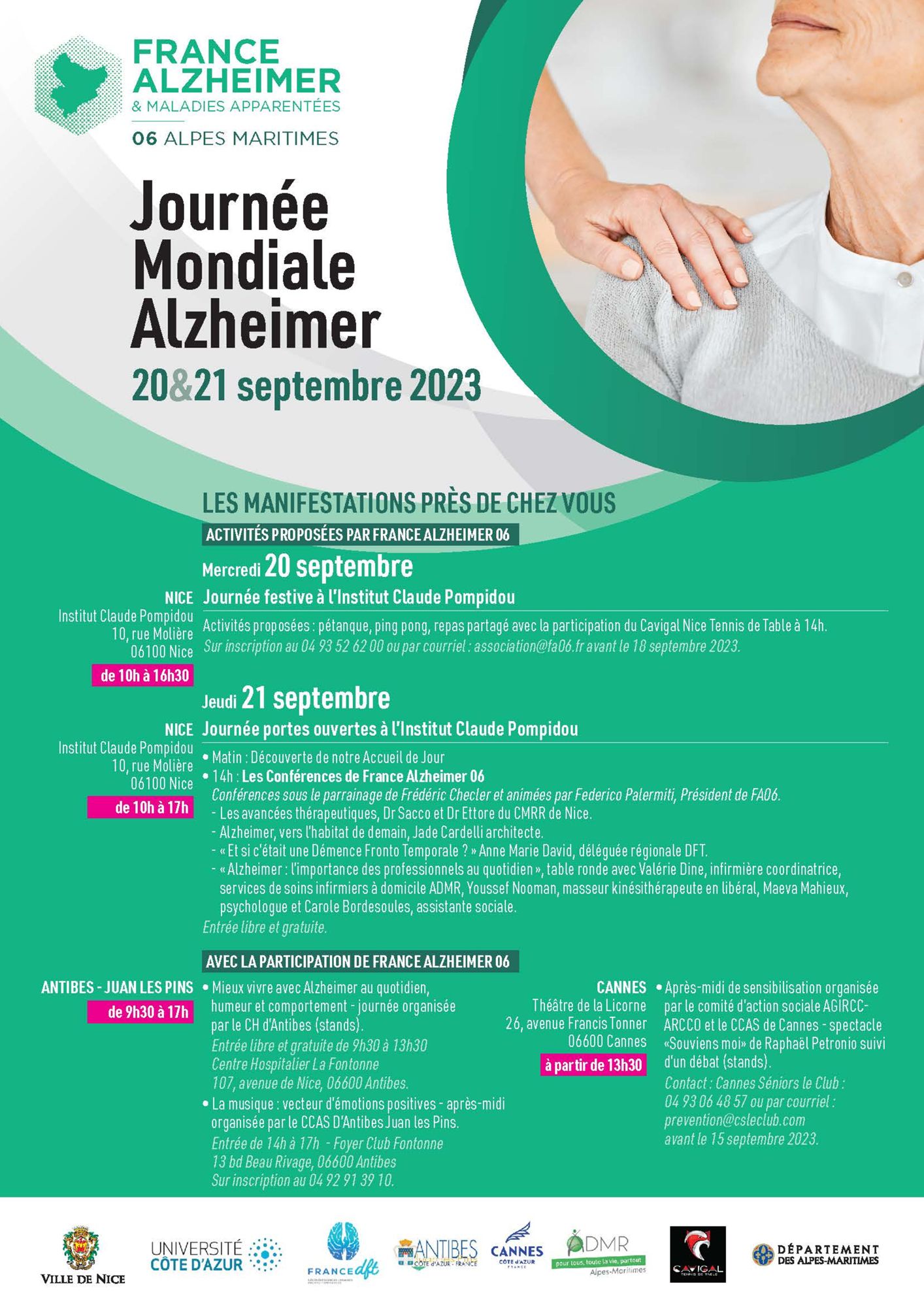 D'autres manifestations dans les principales villes de notre département seront organisées par nos partenaires auxquelles France Alzheimer 06 participera.