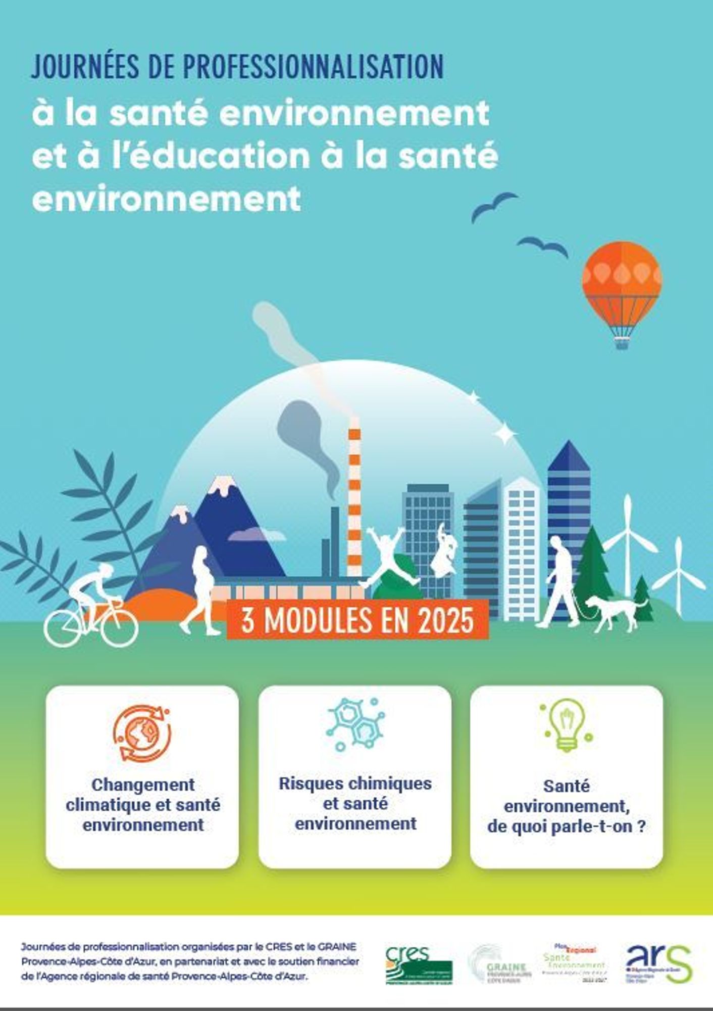 - Risques chimiques et santé environnement : 15 et 16 mai 2025 au CRES, 178 cours Lieutaud, 13006 Marseille (dates à confirmer, programme et formulaire de pré-inscription à venir)