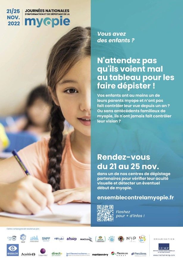 Un message fort : « Parce que la myopie n’attend pas, faites contrôler votre vision du 21 au 25 novembre 2022 ! »