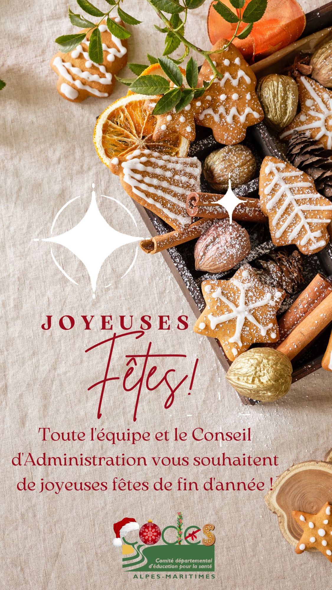 Joyeuses fêtes de fin d'année ! CODES 06 - Décembre 2024 Dernière modification : 1 janvier 2025 Toute l'équipe et le Conseil d'Administration du CODES 06, vous souhaitent de belles fêtes de fin d'année !