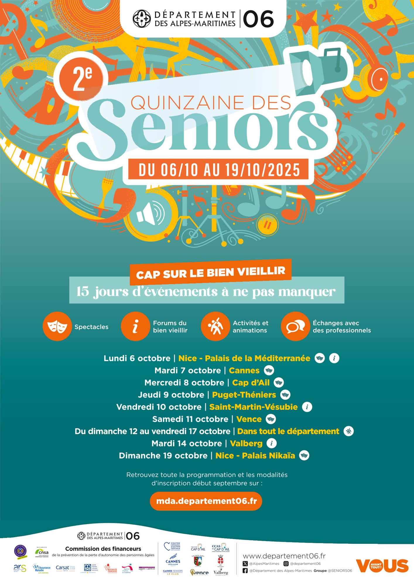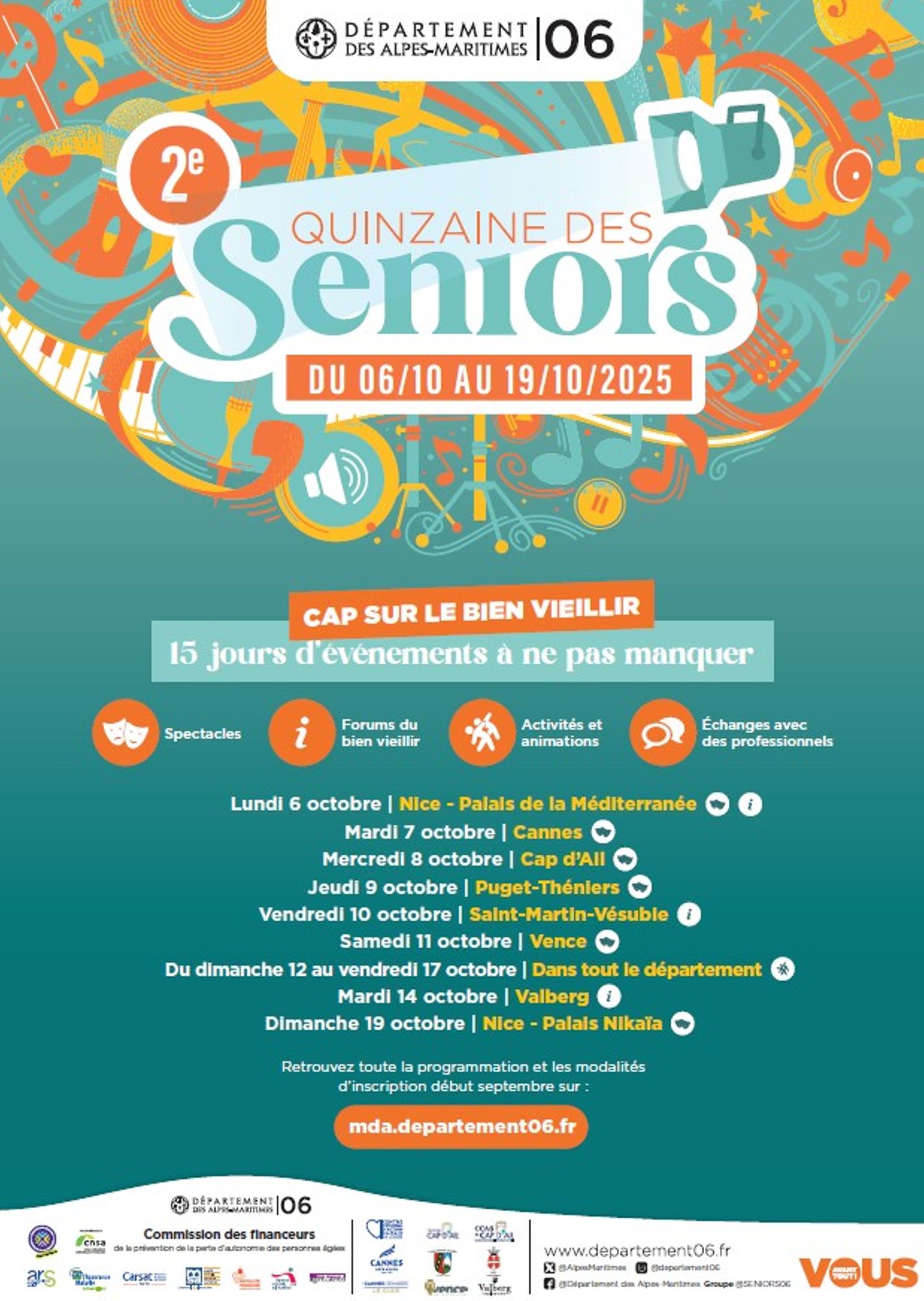 Le département des Alpes-Maritimes organise un grand événement annuel à destination des personnes âgées : « La quinzaine des seniors » qui se déroulera du 6 au 19 octobre 2025. Cap sur le bien veillir.