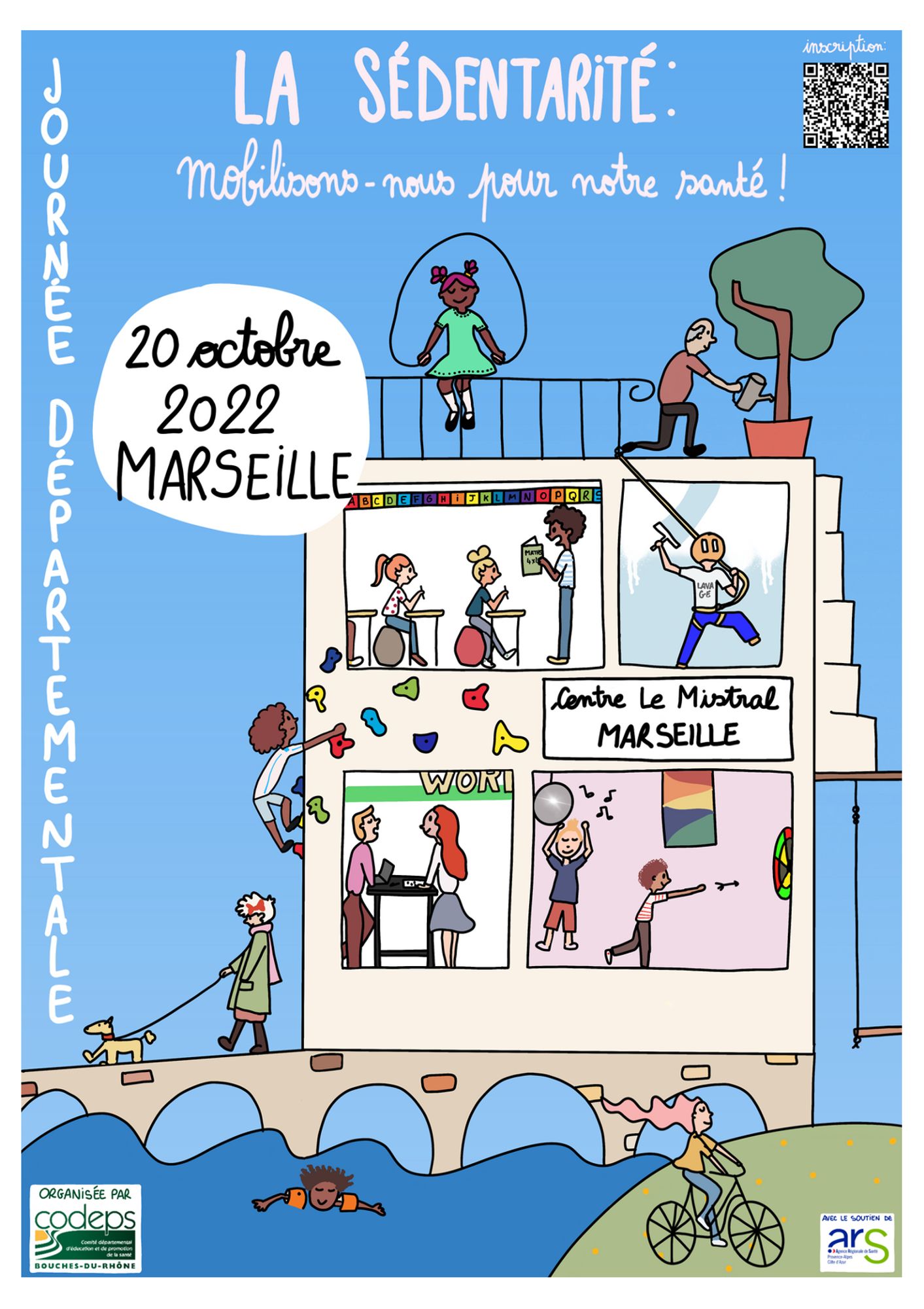 La prochaine journée départementale du Codeps13 sur le thème "La sédentarité : mobilisons-nous pour notre santé !" aura lieu le 20 octobre 2022 à Marseille.
