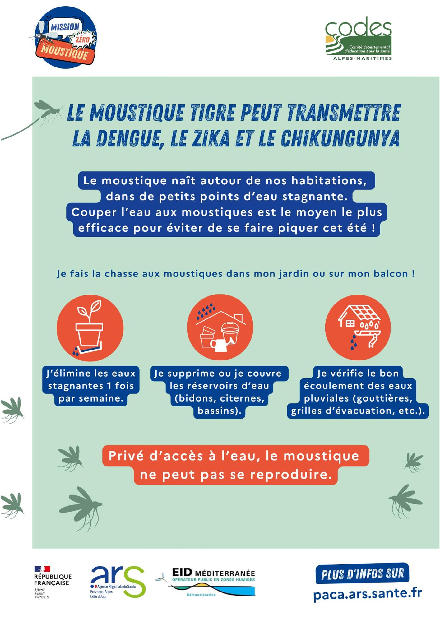 Le CODES 06 - Comité Départemental d'Education pour la Santé des Alpes-Maritimes, avec l’Agence régionale de santé - Provence-Alpes-Côte-d'Azur ( ARS Paca ), la Ville de Nice et le Centre Hospitalier Universitaire de Nice (CHU de Nice), vous invite à un rendez-vous prévention incontournable, la Mission Zéro Moustique, le vendredi 27 & samedi 28 juin 2025 de 9h à 13h à Parvis Sud – Gare du Sud, Nice