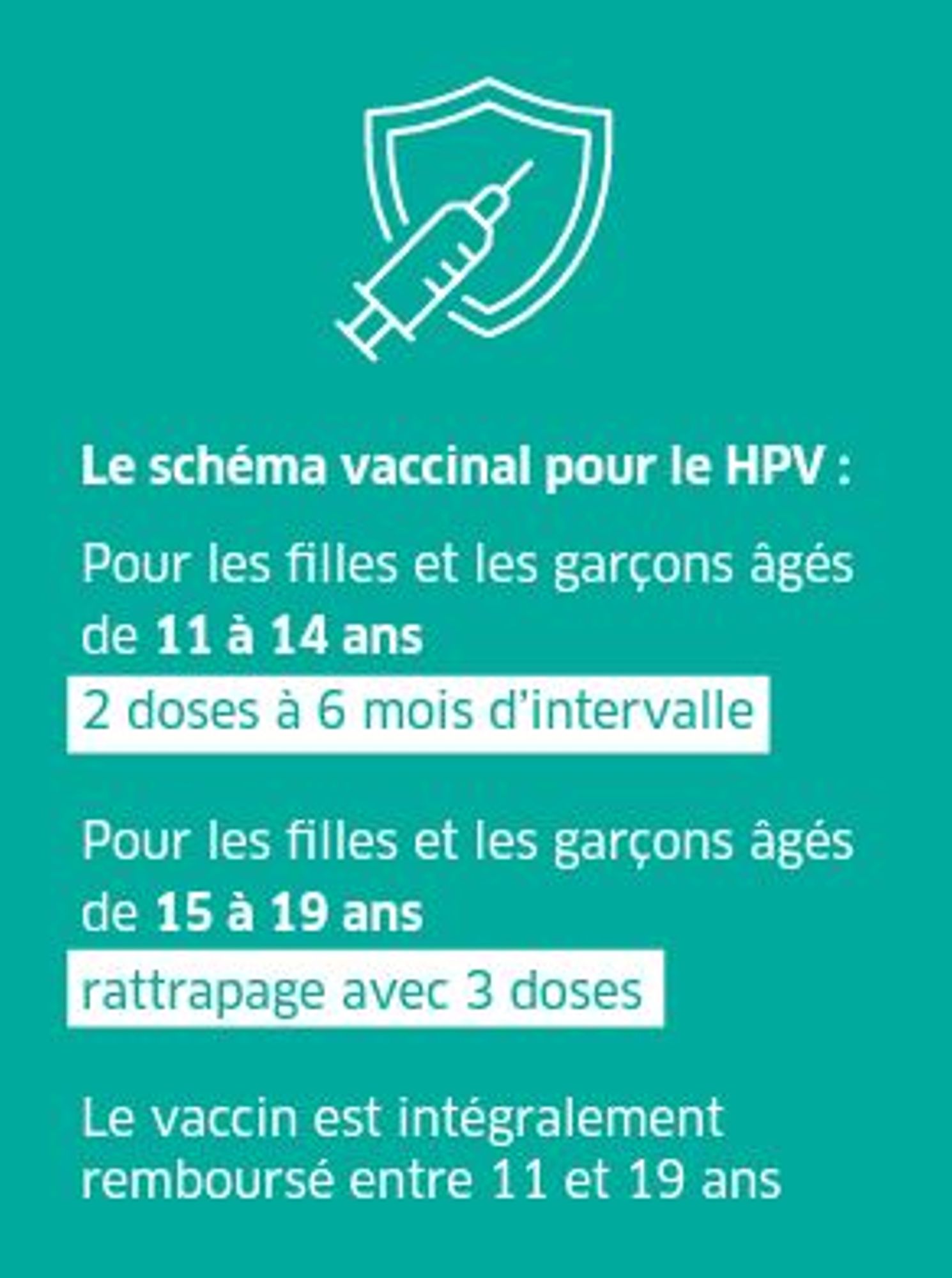 Auparavant réservé aux filles, la vaccination HPV est désormais recommandée à tous les garçons entre 11 et 14 ans. L’objectif de l’Institut national du cancer est que 80% d’une classe d’âge, garçons et filles, soit vaccinée contre le HPV à l’horizon 2030. « Mais sans une campagne de sensibilisation de grande ampleur sur le sujet, cela va être difficile à atteindre », prévient le Dr Rebouillat.