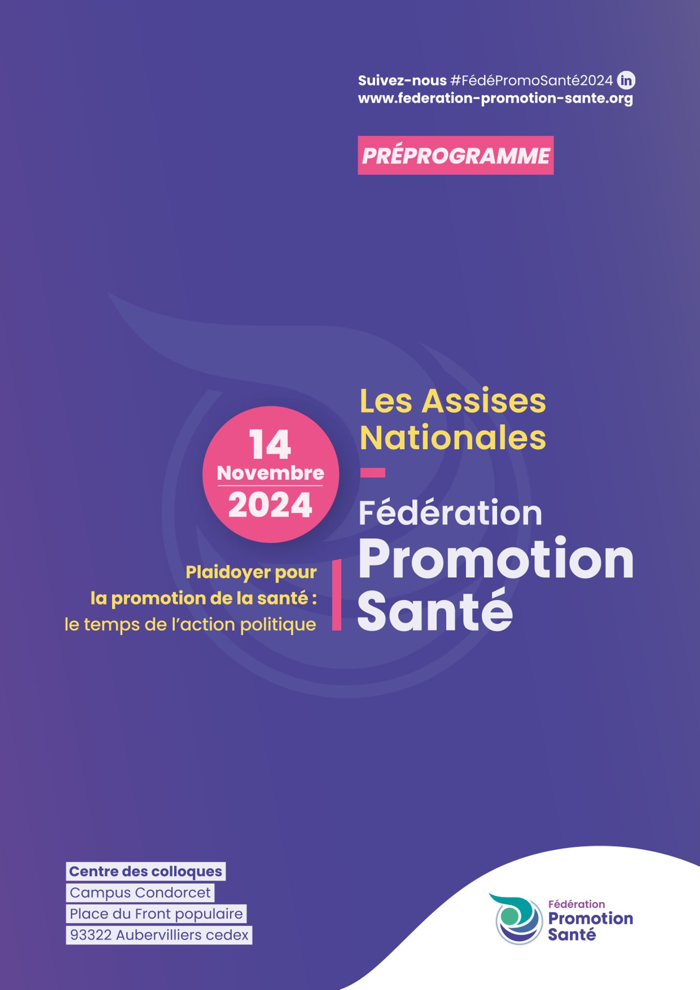 Les Assises nationales de la Fédération Promotion Santé sur le thème " Plaidoyer pour la promotion de la santé : le temps de l’action politique" se tiendront le 14 novembre 2024 au Centre des colloques du Campus Condorcet à Aubervilliers.