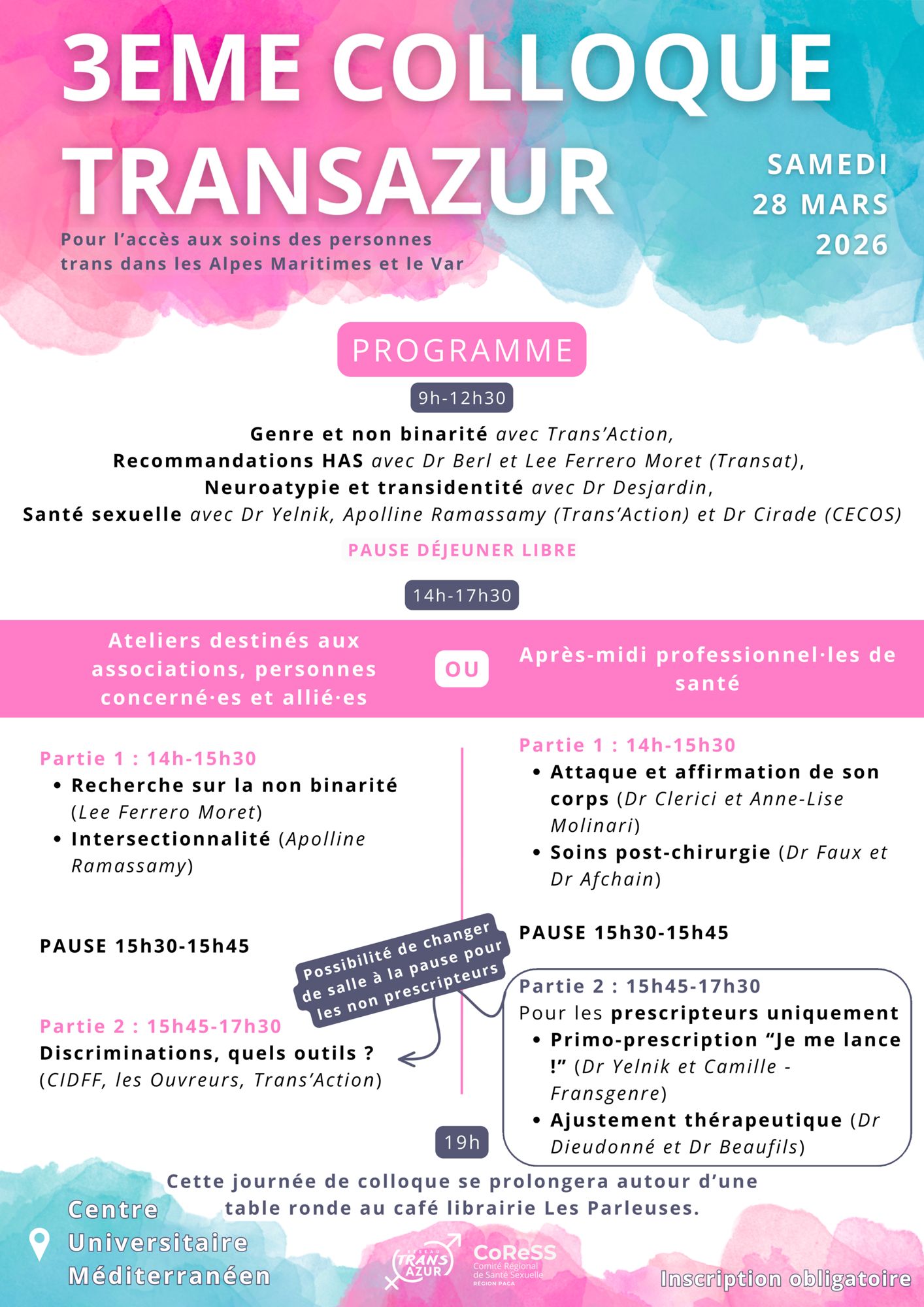 « TransAzur revient pour son 3ᵉ colloque le 28 mars ! Au CUM de Nice (65 promenade des Anglais) : Inscription GRATUITE mais obligatoire via le lien 👉 AssoConnect