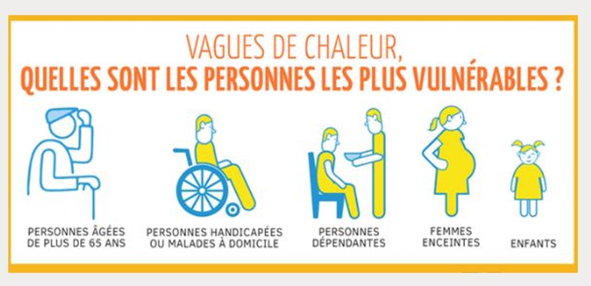 En période de fortes chaleurs ou de canicule les personnes âgées et les enfants en bas âge sont les plus vulnérables. Toutefois, la vigilance de tous est conseillée.