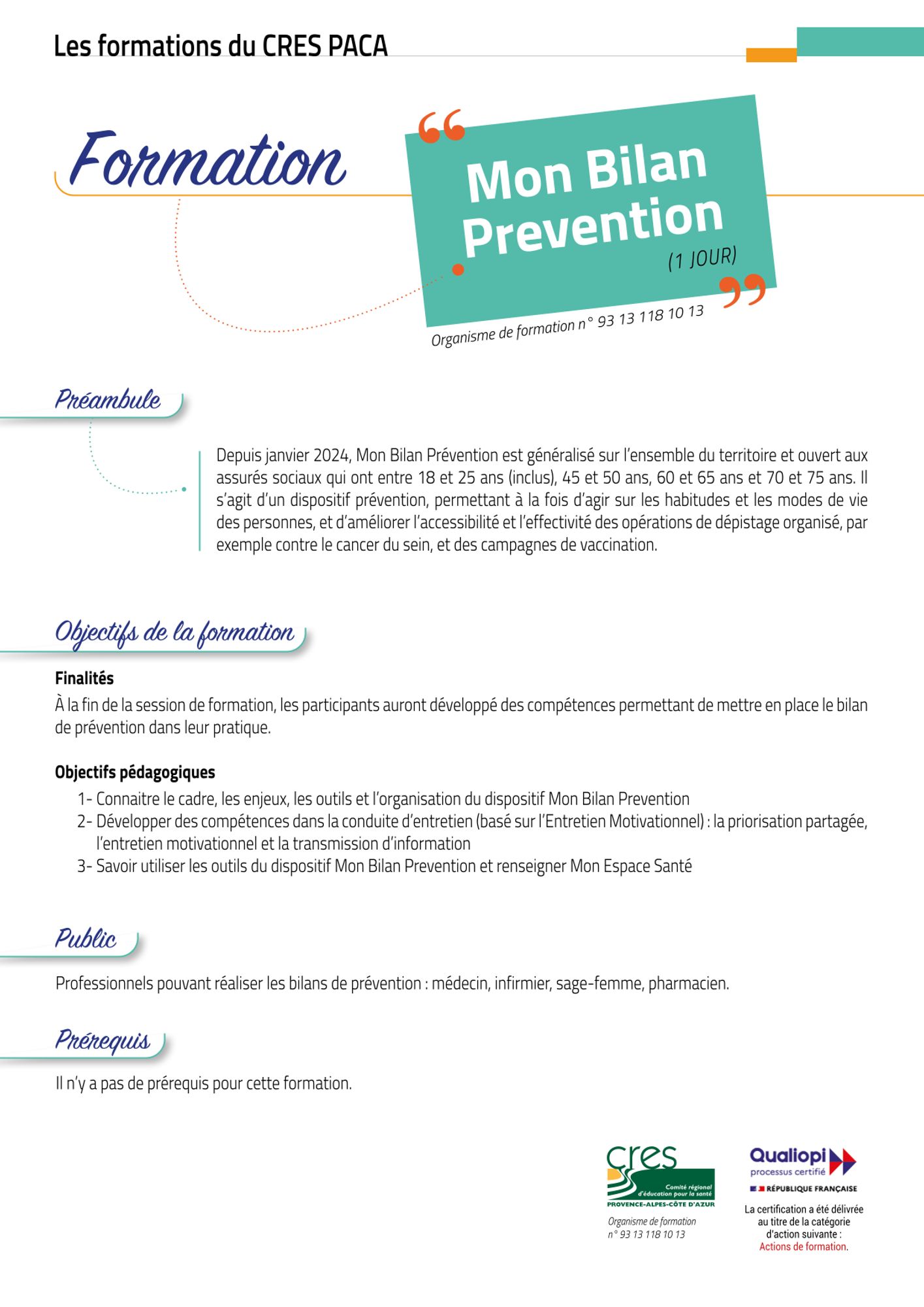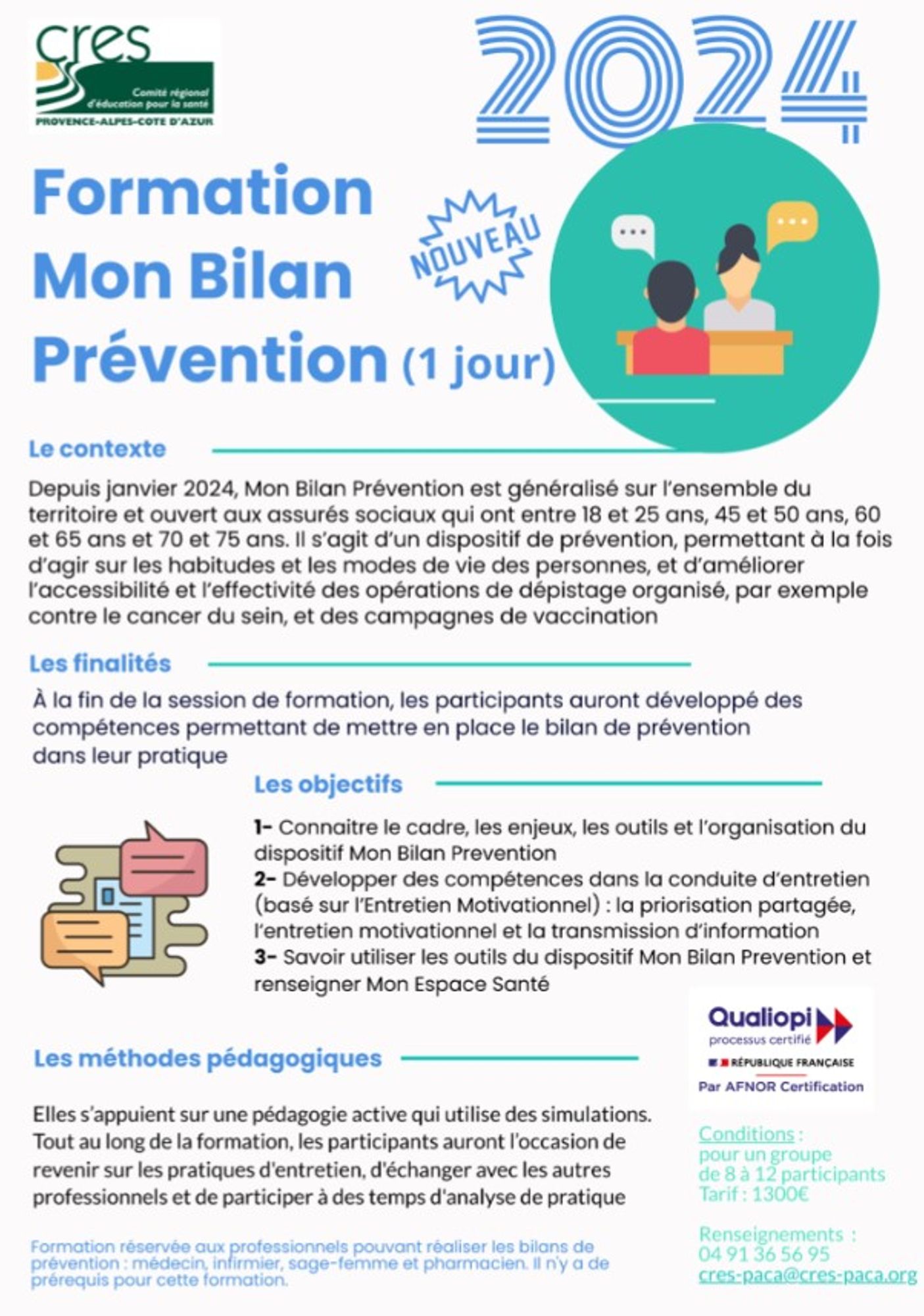 Le CRES propose une nouvelle formation d'un jour à l'issue de laquelle les participants auront développé des compétences permettant de mettre en place ce bilan de prévention dans leur pratique.