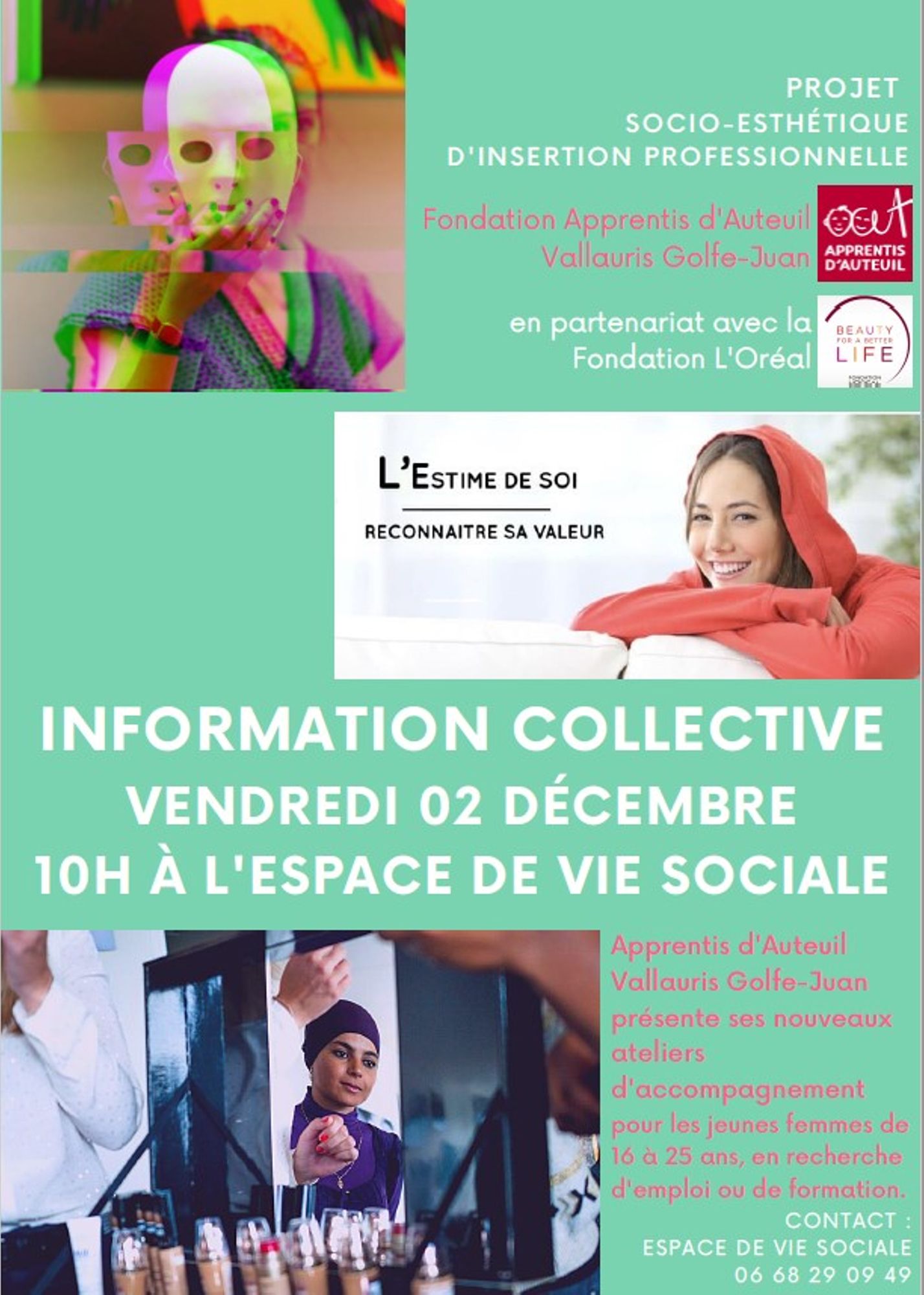 En partenariat avec la Fondation L'Oréal, nous proposons un accompagnement socio-esthétique innovant sur le territoire, "Estime de soi et insertion", destiné aux jeunes femmes de 16/25 ans en recherche d'emploi ou de formation.