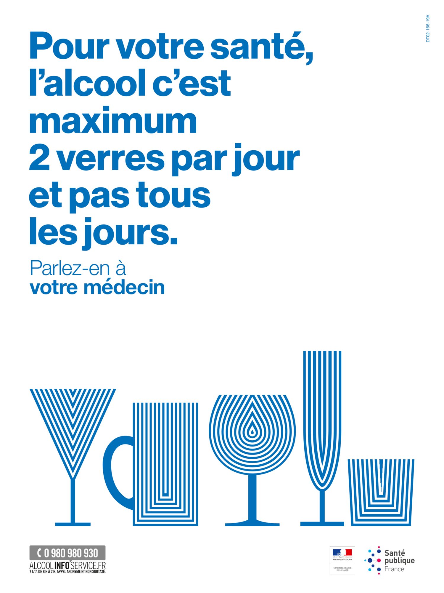 Pour votre santé, l'alcool c'est maximum 2 verres par jour et pas tous les jours.
