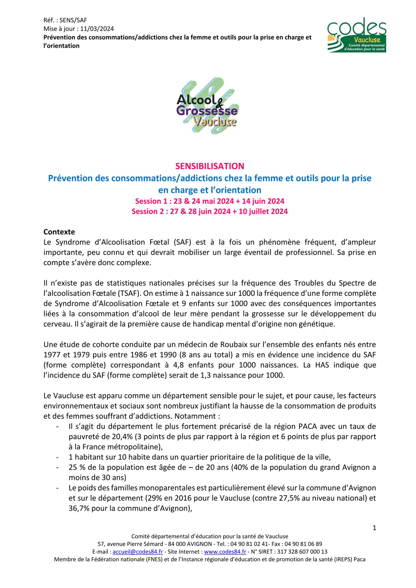 CODES 84 - Deux sessions en mai et juin 2024