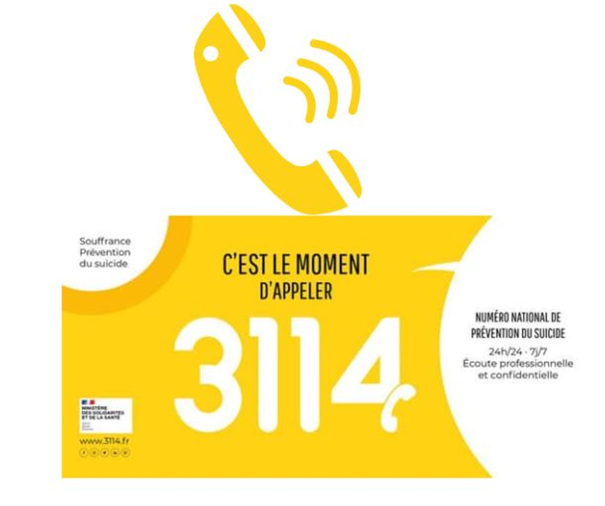 Le numéro national de prévention du suicide le 3114, accessible 24h/24 et 7j/7, gratuitement, en France, propose un accompagnement et une écoute par un professionnel du soin, spécifiquement formé à la prévention du suicide. Ce dispositif comporte également un site internet qui met à disposition des ressources pour mieux comprendre la crise suicidaire et des conseils pour la surmonter.