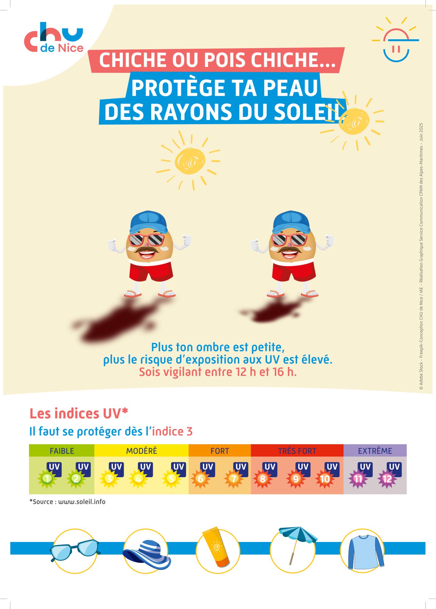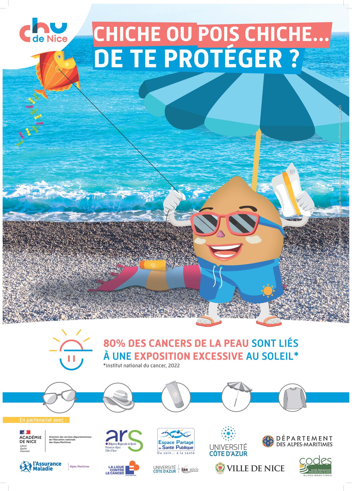 Dans le cadre du programme “Protège ta peau – Chiche ou pois chiche”, porté par le Département de Santé publique - CHU de Nice, des actions de sensibilisation à la prévention solaire sont proposées de manière ludique et pédagogique.