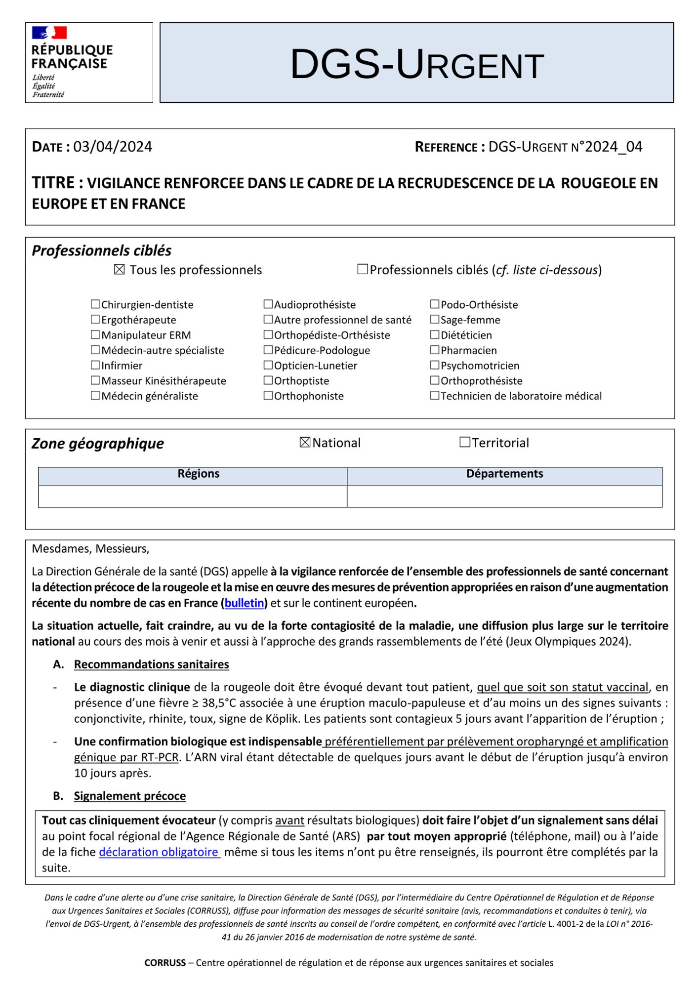 Recrudescence de la rougeole en France et en Europe, restons mobilisés