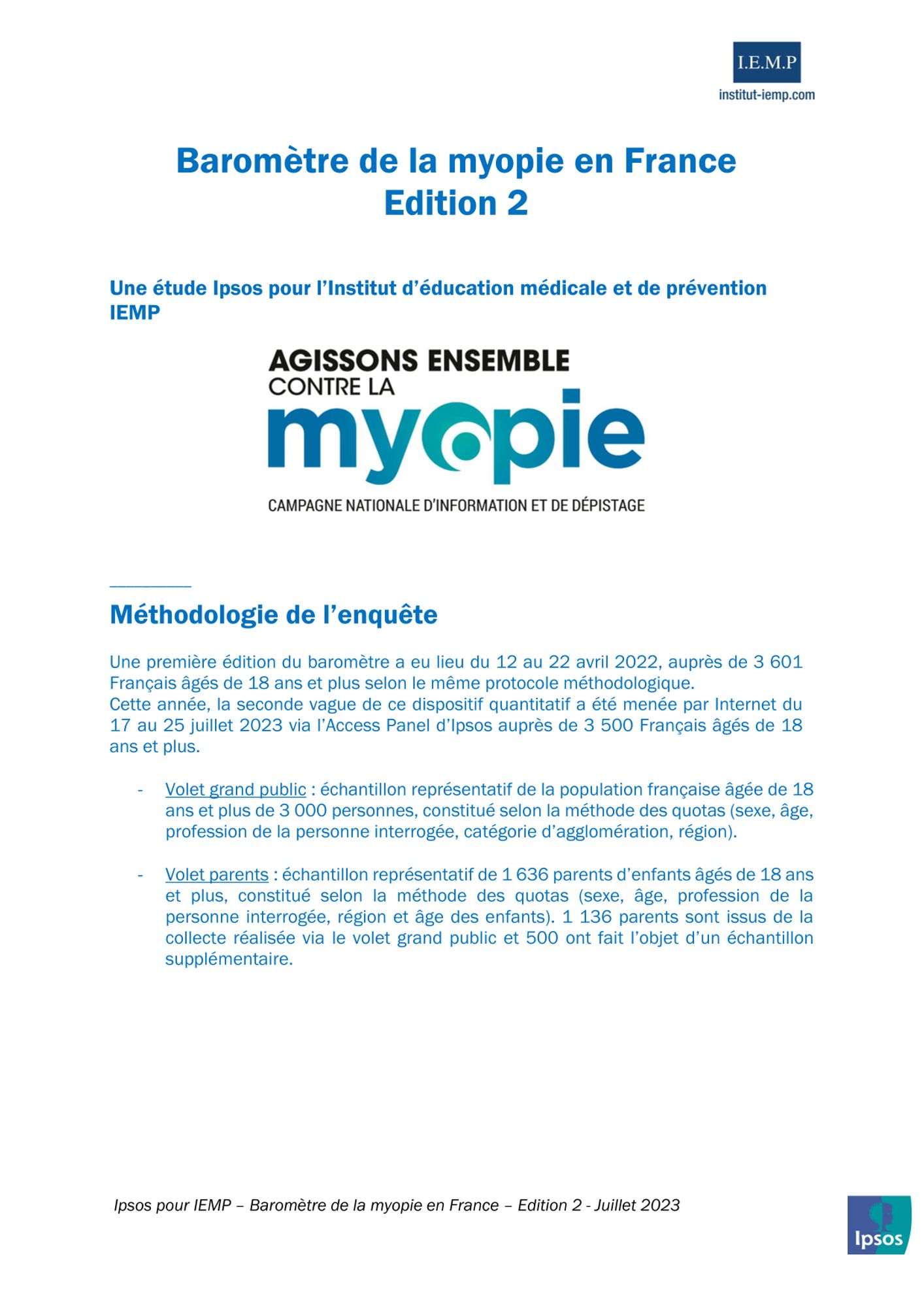 - Des Français encore peu informés sur l’existence de solutions permettant de ralentir la progression de la myopie chez les enfants : moins de 2 Français sur 10 connaissent l’existence de ces solutions, mais 95 % se disent favorables à la mise en place de campagnes nationales d’information pour les faire connaître.
