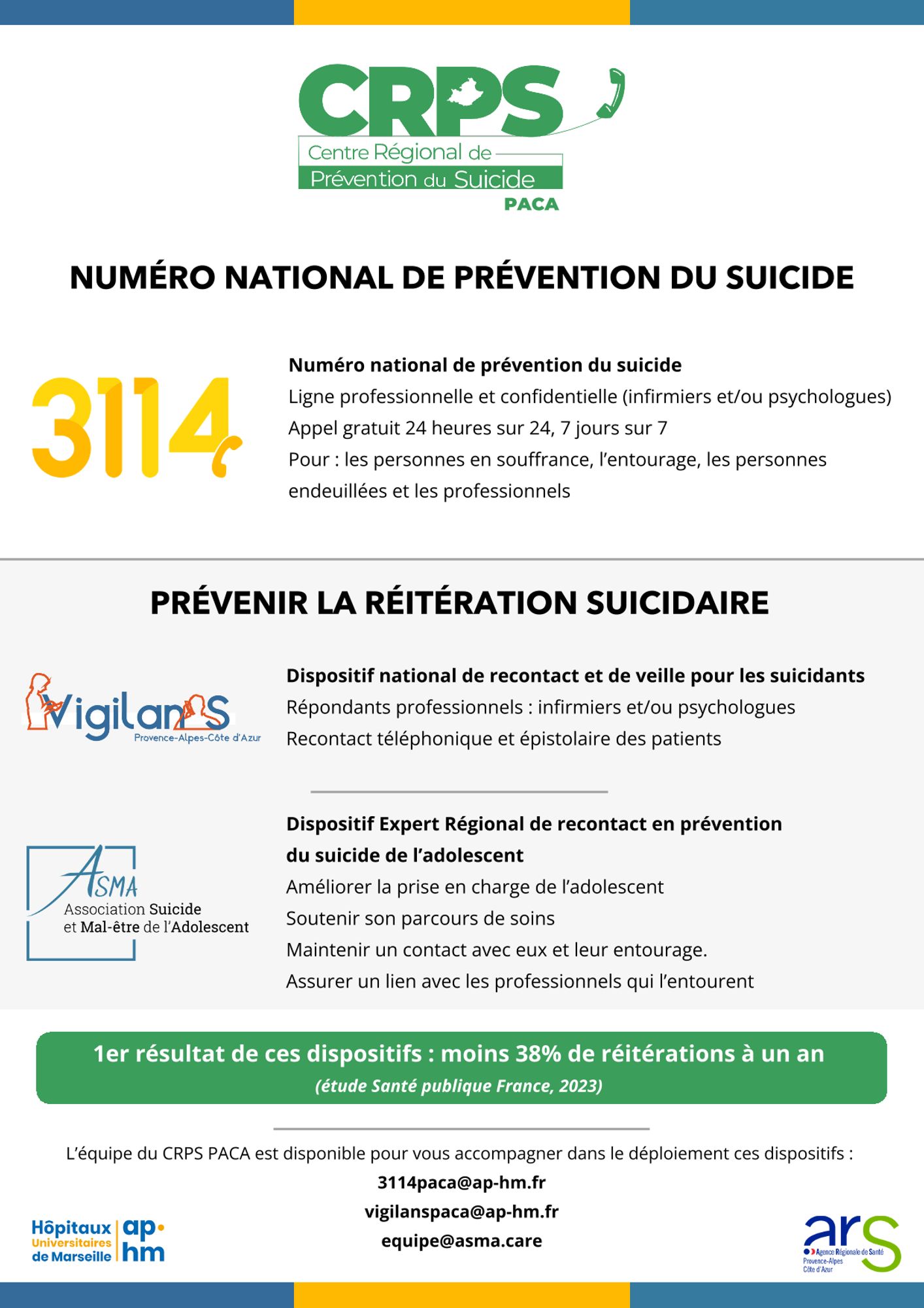 - Faire connaître le 3114, numéro national de prévention du suicide