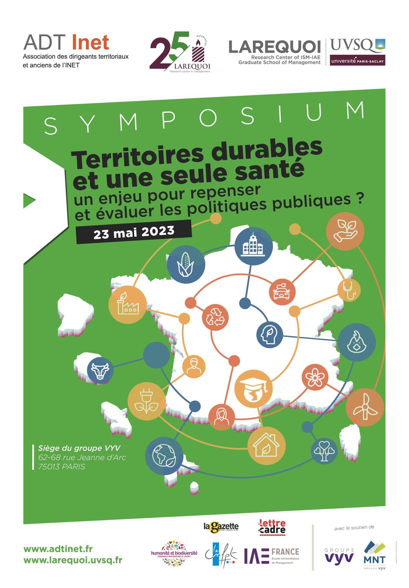 Le nouveau symposium, organisé le mardi 23 mai au siège du Groupe VYV, portera sur le thème « Territoires durables et une seule santé : un enjeu pour repenser et évaluer les politiques publiques ? »