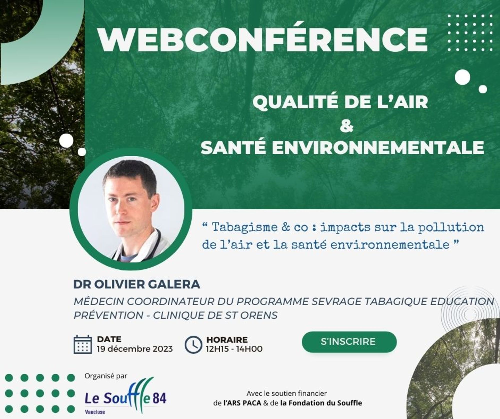 Animée par le Dr Olivier GALERA, médecin tabacologue, coordinateur du programme Sevrage Tabagique Education Prévention à la Clinique de St Orens, auteur de l'ouvrage Tobaccolibris (aux éditions HDiffusion) et conférencier.