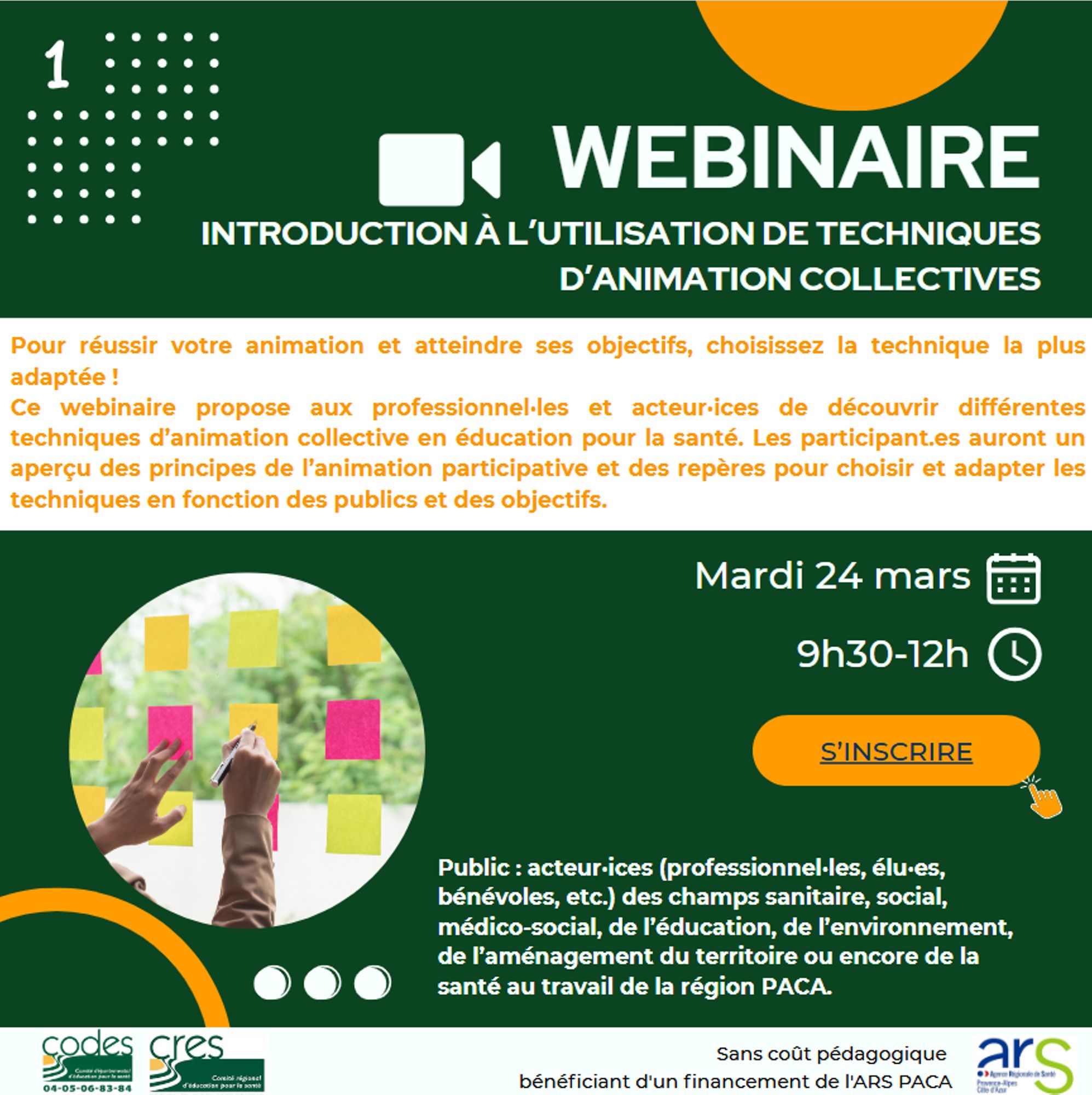 Ce webinaire propose aux professionnel·les et acteur·ices de découvrir différentes techniques d’animation collective en éducation pour la santé. Les participant.e auront un aperçu des principes de l’animation participative et des repères pour choisir et adapter les