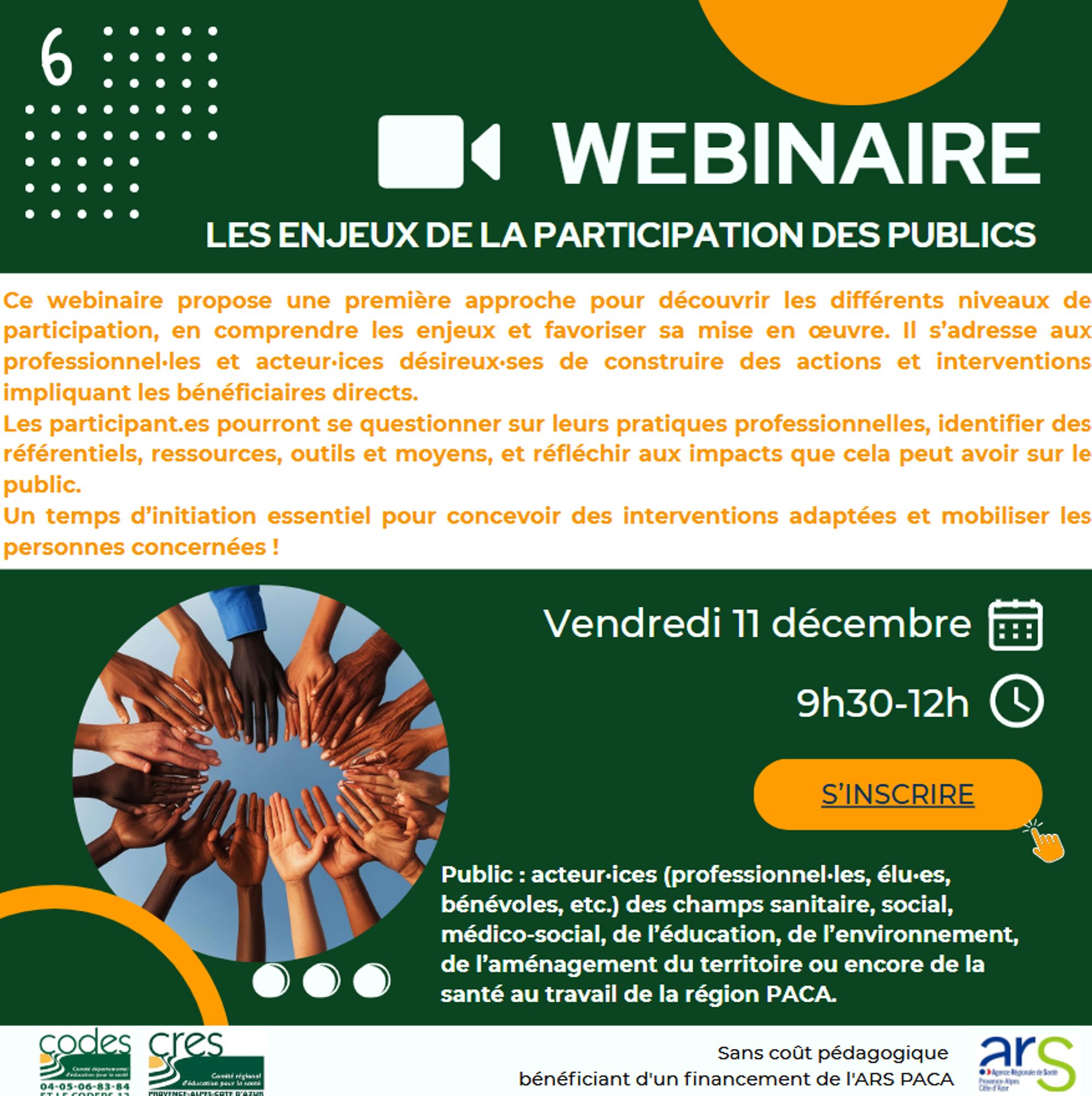 Webinaire sans coût pédagogique bénéficiant d’un financement de l’ARS PACA, inscription ci-dessous.