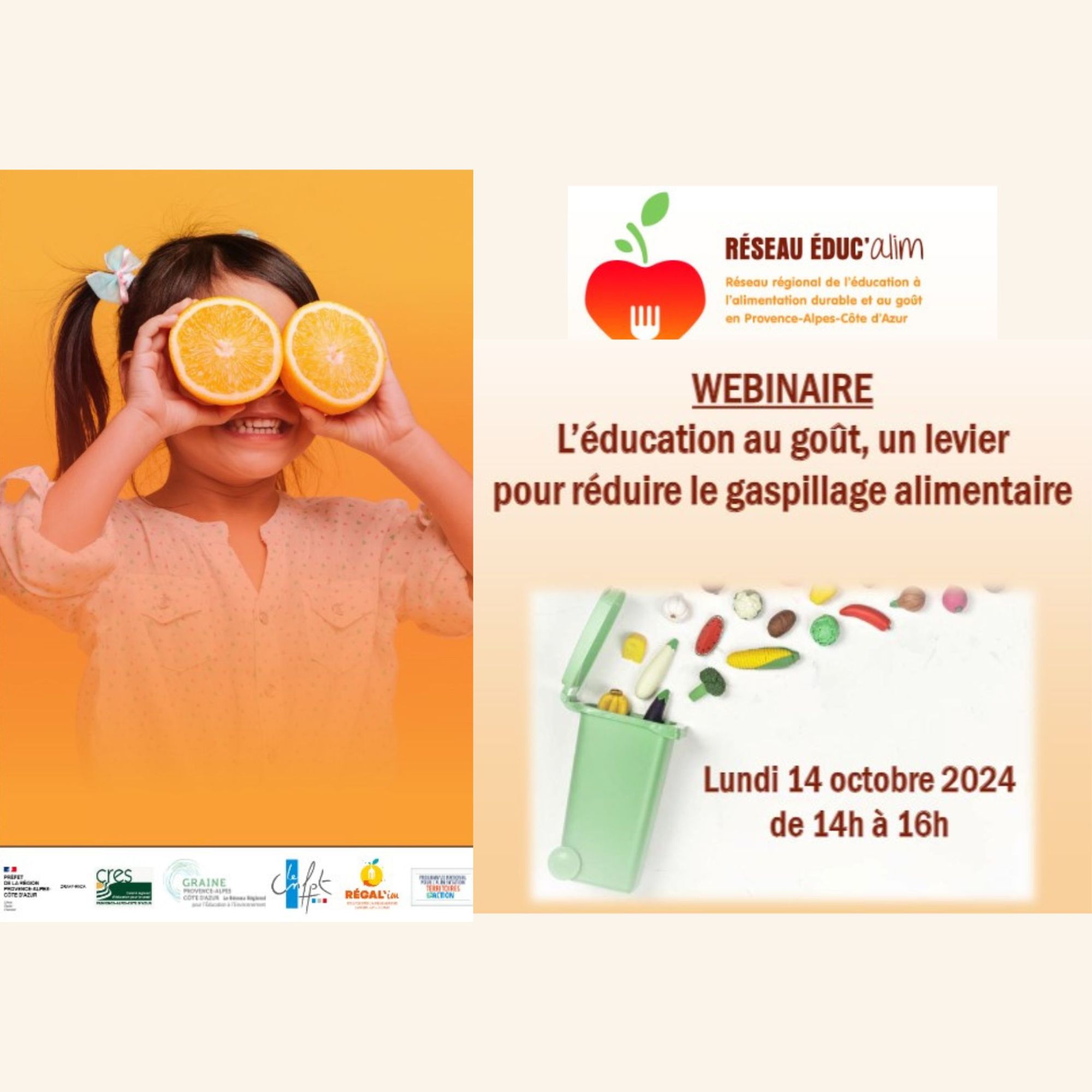 Webinaire "L’éducation au goût, un levier pour réduire le gaspillage alimentaire" Réseau Educ'Alim - Le 14 octobre 2024 de 14h à 16h Dernière modification : 15 octobre 2024 Le webinaire "L’éducation au goût, un levier pour réduire le gaspillage alimentaire" aura lieu le Lundi 14 octobre 2024 de 14h à 16h. Le programme précis et le lien d’inscription vous seront communiqués prochainement. Lundi 14 octobre 2024