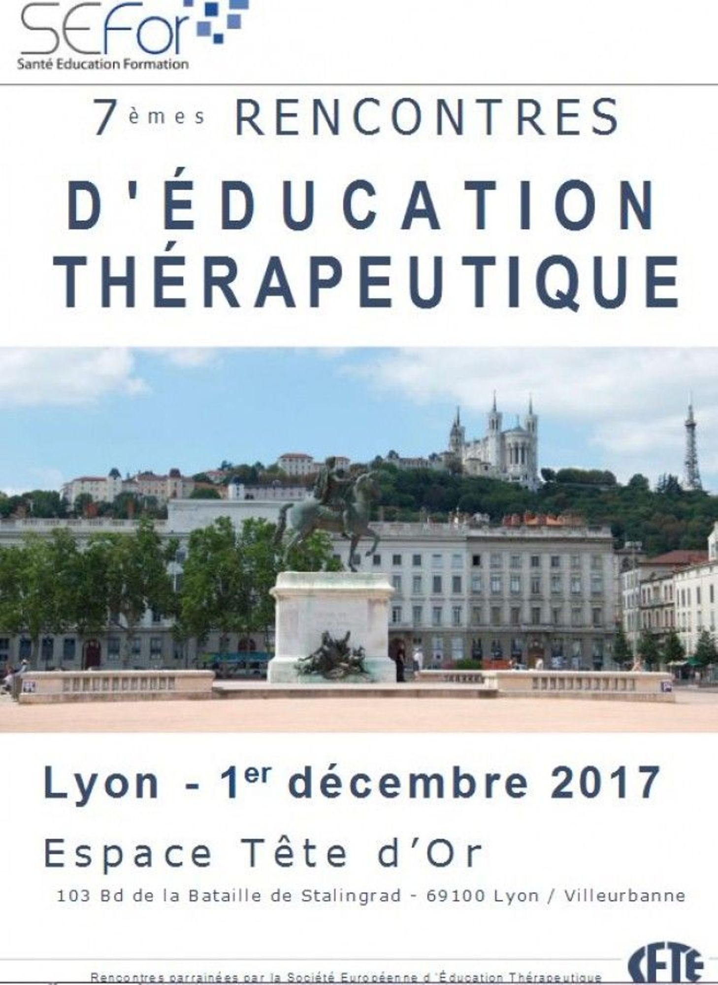 7èmes rencontres d'éducation thérapeutique 1er décembre 2017 - Lyon Rencontres organisées par la SEFOR (Santé éducation formation). Consultez le programme et inscrivez-vous