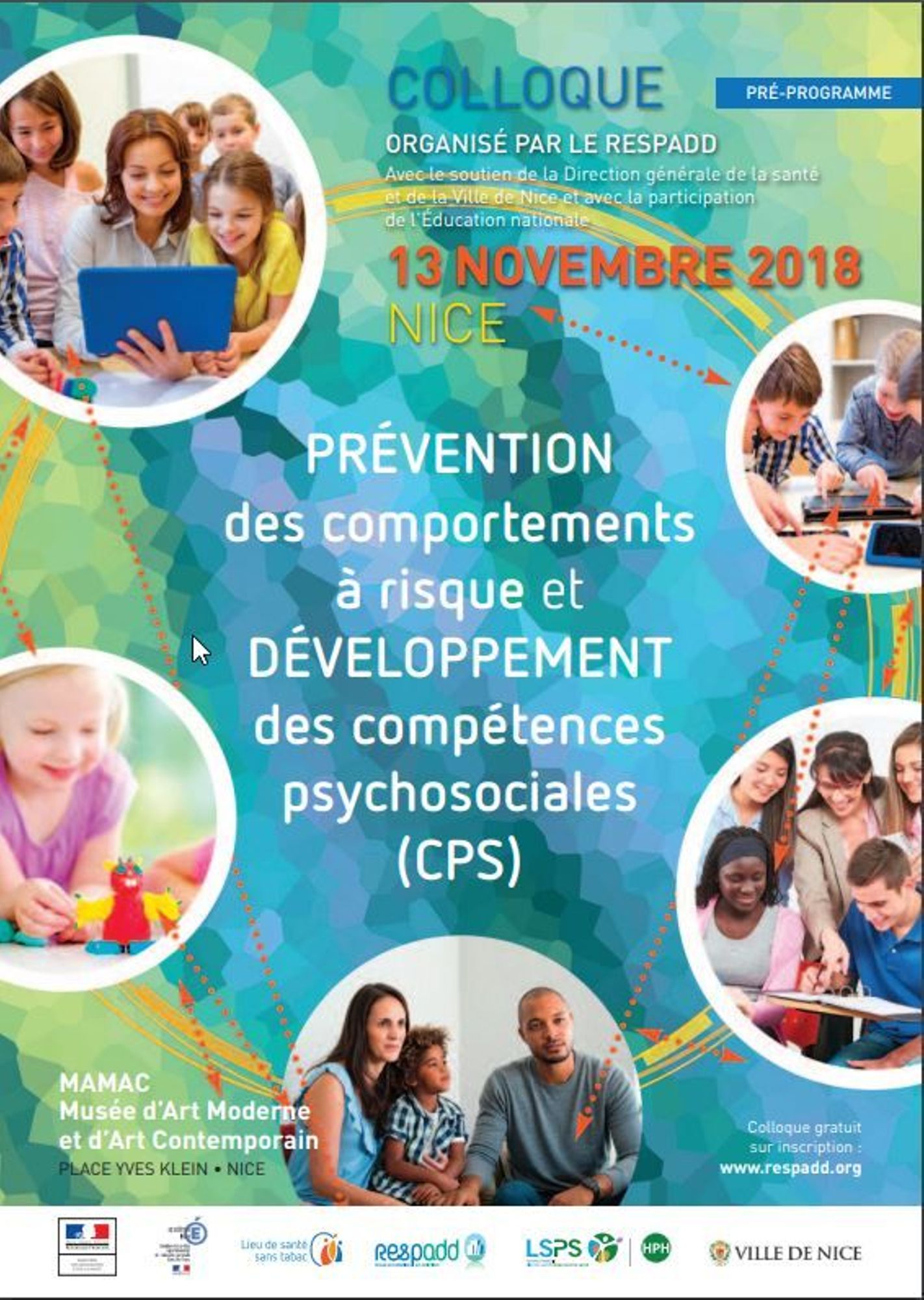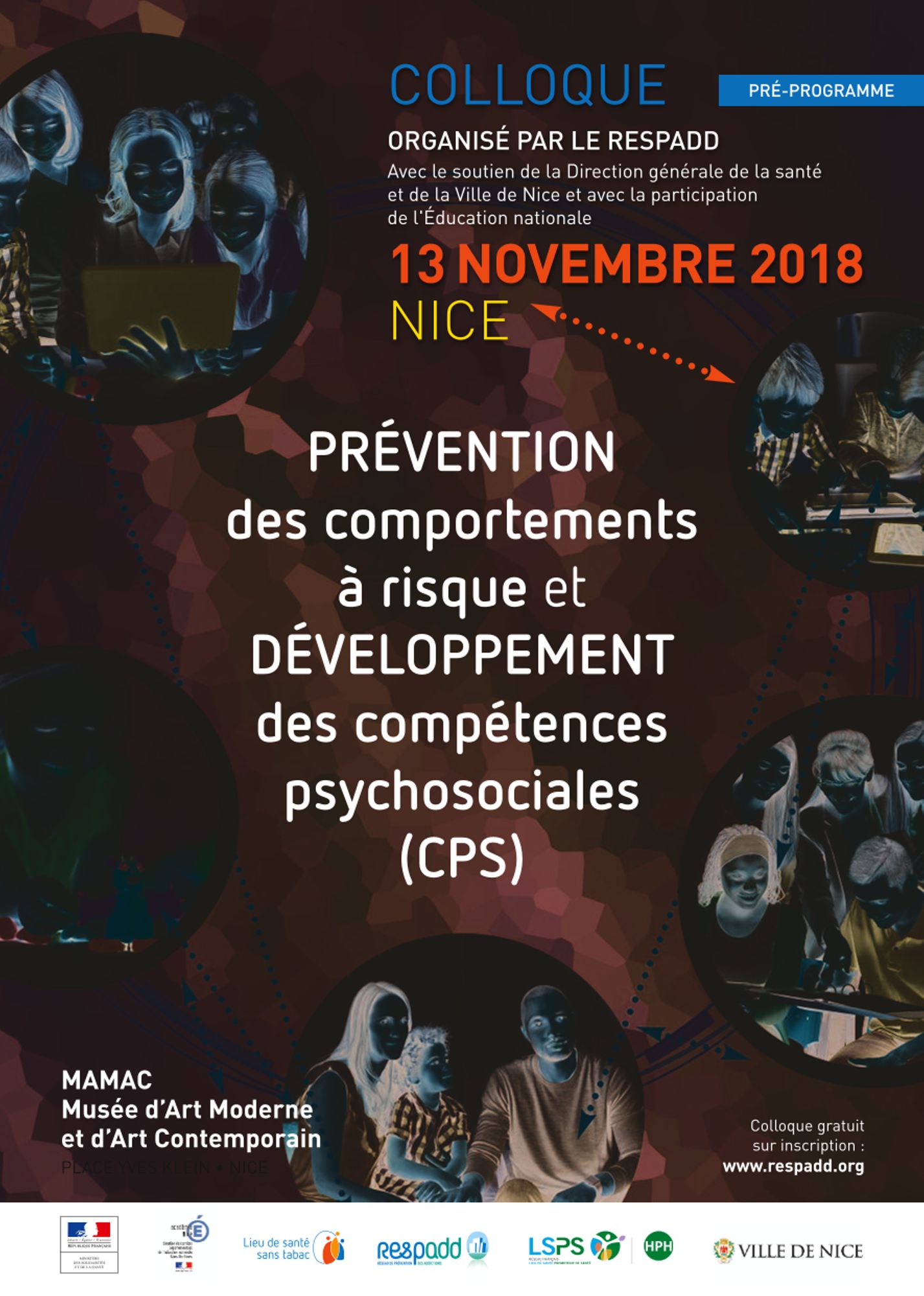 Vous pouvez désormais vous inscrire au colloque du RESPADD intitulé "Prévention des comportements à risque et développement des compétences psychosociales" qui aura lieu le mardi 13 novembre 2018 au Musée d'art moderne et d'art contemporain à Nice.